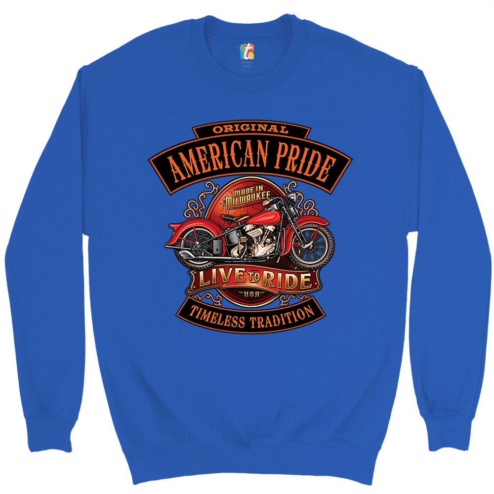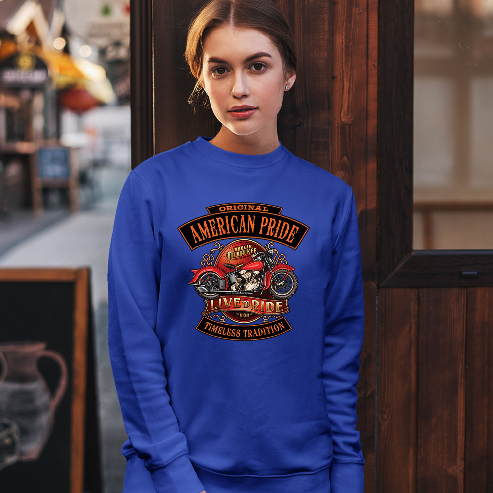 ORIGINAL AMERICAN PRIDE sweatshirt live to ride timeless tradition crewneck royal blue