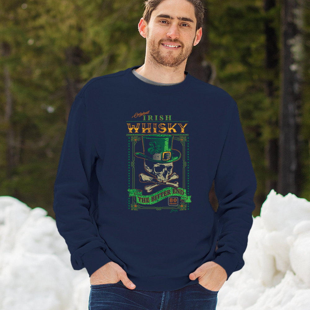 ORIGINAL IRISH WHISKEY sweatshirt st. patrick's day drinking shamrock pattys shenanigans slainte st paddys crewneck navy blue