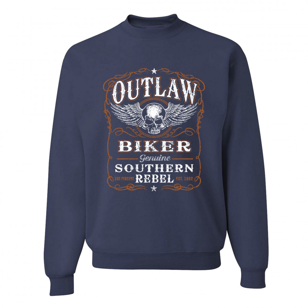OUTLAW BIKER sweatshirt genuine southern rebel winged skull face crewneck navy blue