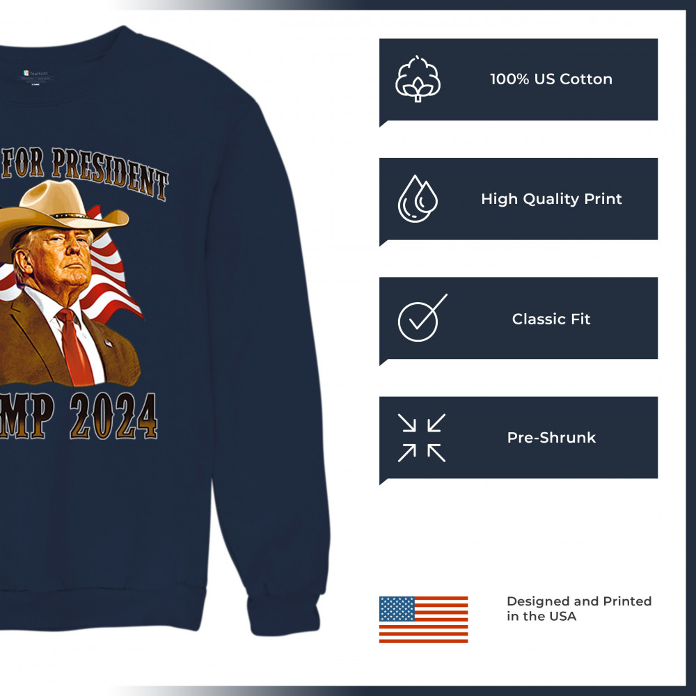 The "Outlaw for President" Trump 2024 design is a powerful symbol of American resilience and conservative pride. Featuring Donald J. Trump in a cowboy hat with the American flag waving behind, this design speaks to supporters who believe in the America First movement, conservative values, and a rebel spirit. Ideal for rallies, patriotic events, and anyone looking to make a bold statement for the 47th President of the United States.