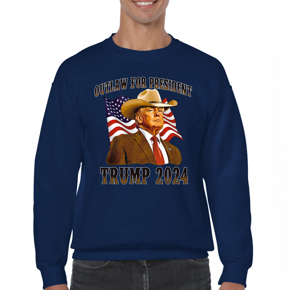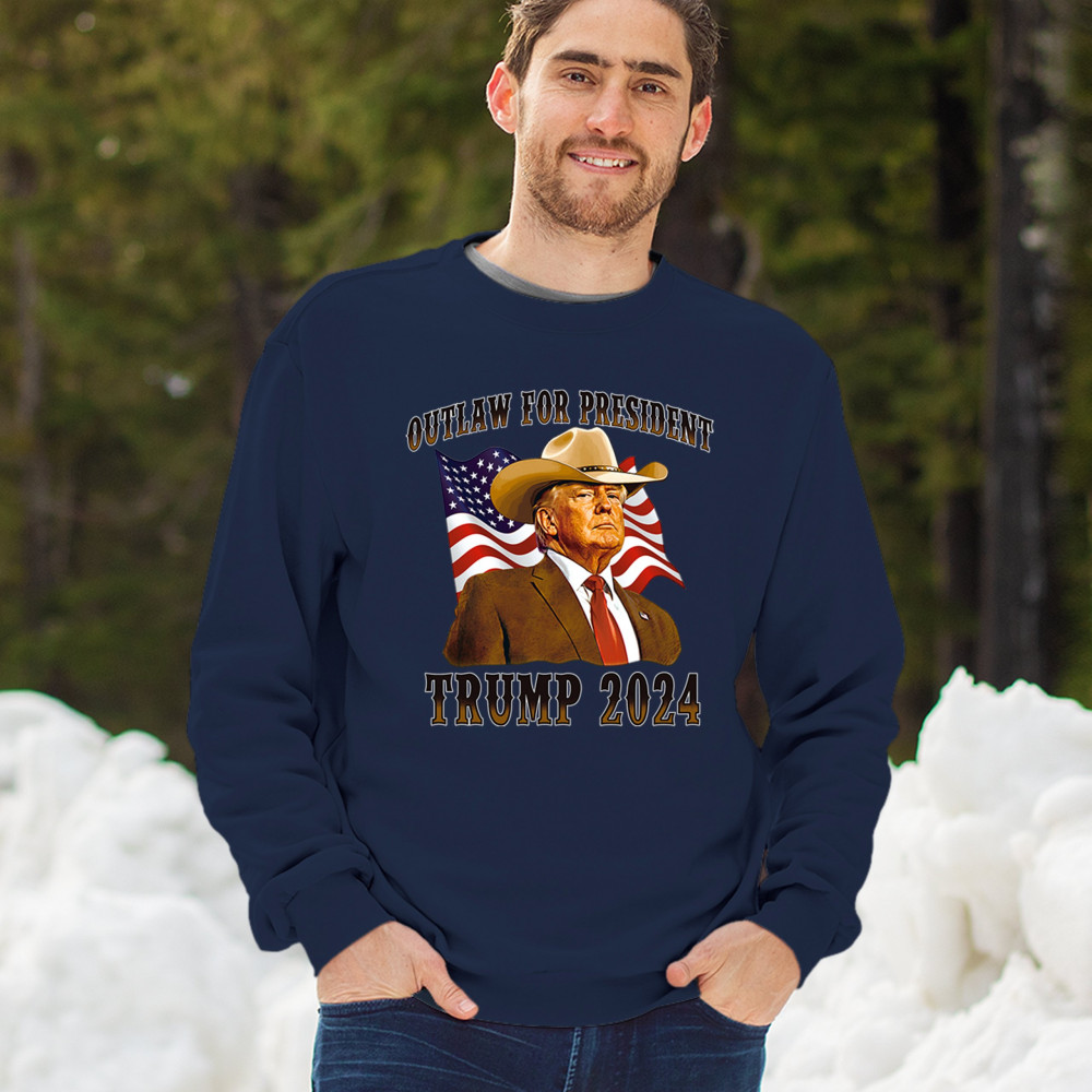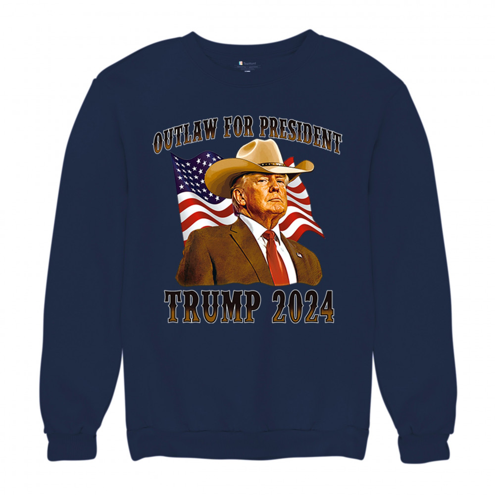 Bold "Outlaw for President" Trump 2024 design for conservative supporters, featuring Donald J. Trump and the American flag. Show your patriotism.