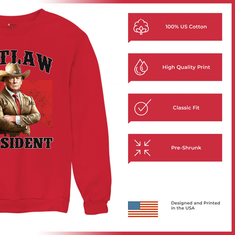 Stand out with the bold "Outlaw President" design, featuring Donald J. Trump in a striking pose that symbolizes conservative values, America First ideals, and the Red Wave movement. Celebrate the fight for victory, the people's mandate, and the unwavering belief in the 47th President. This design is perfect for Trump supporters and Republicans who embody strength and determination.
