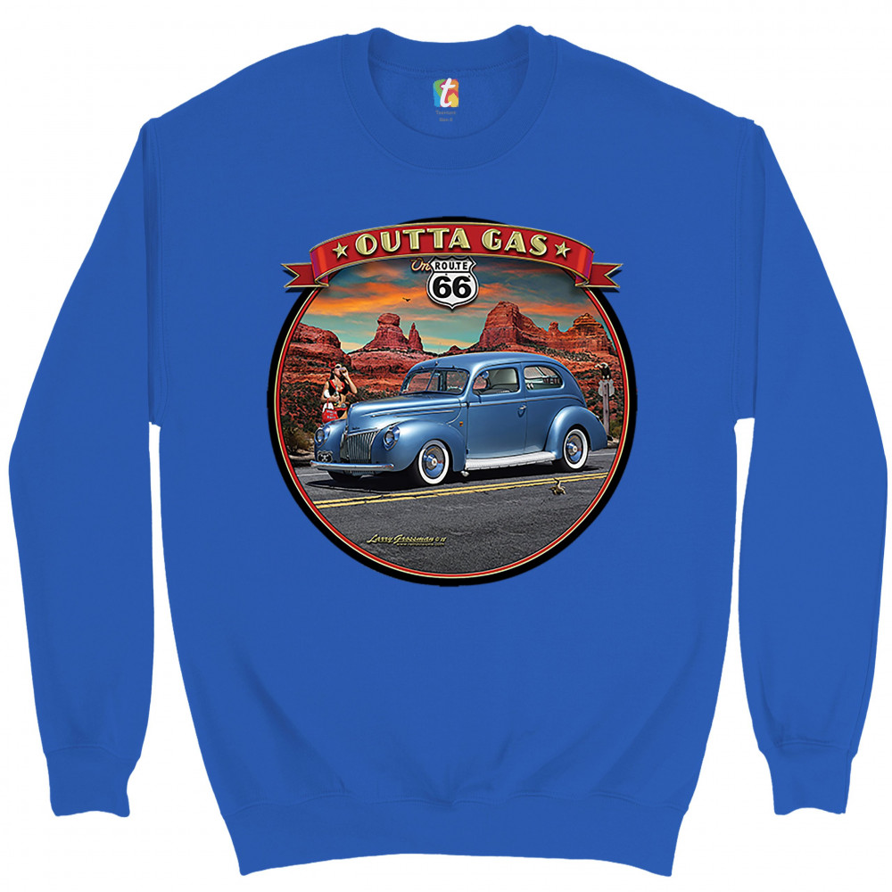 OUTTA GAS ON ROUTE 66 sweatshirt the mother road retro vintage crewneck royal blue