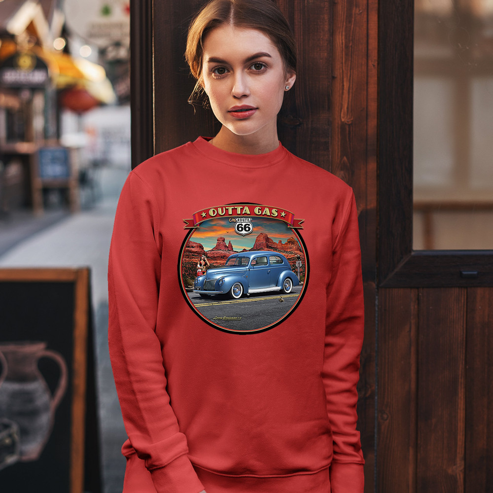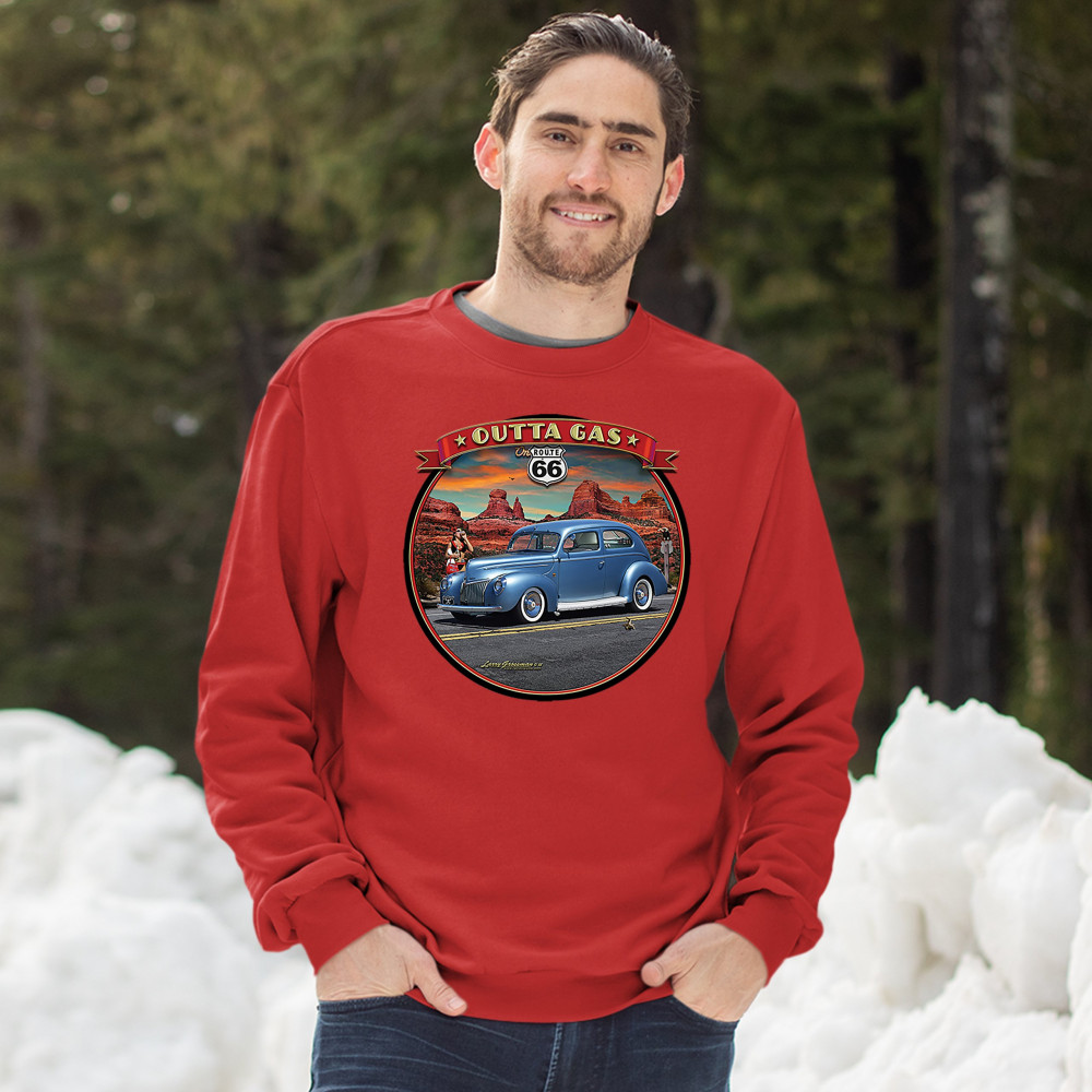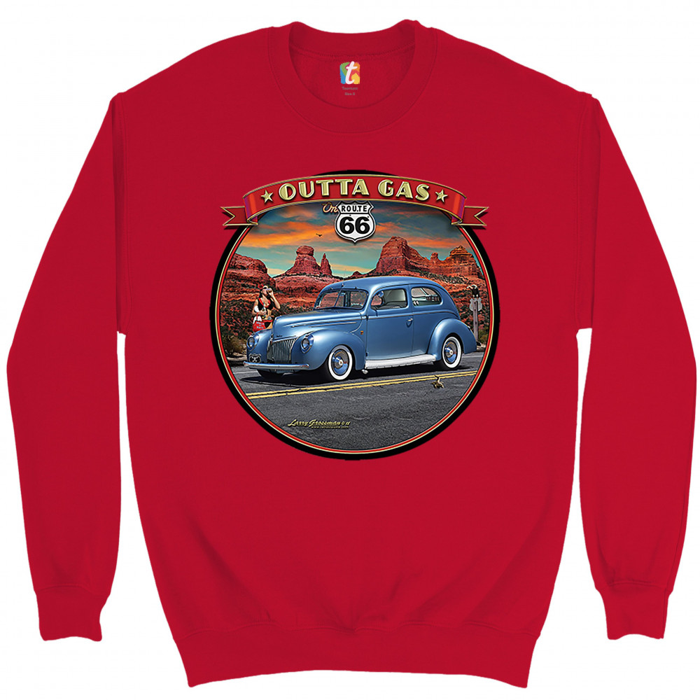 OUTTA GAS ON ROUTE 66 sweatshirt the mother road retro vintage crewneck red