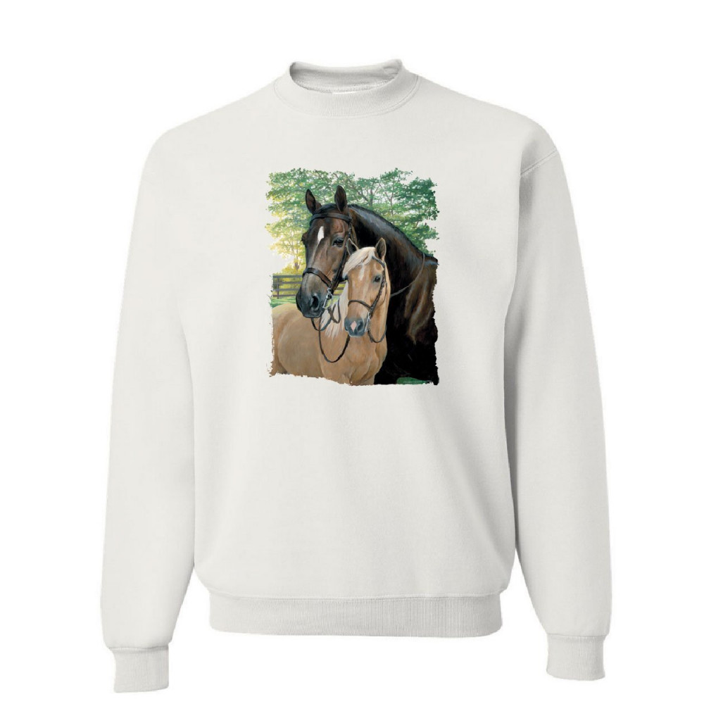 PAIR OF HORSES sweatshirt mustangs horseback riding pony stallion sweater white