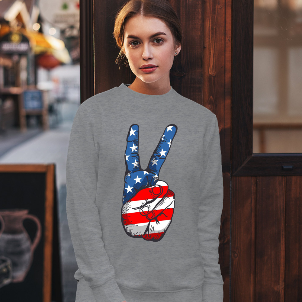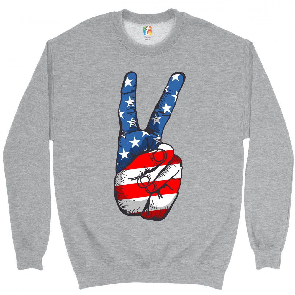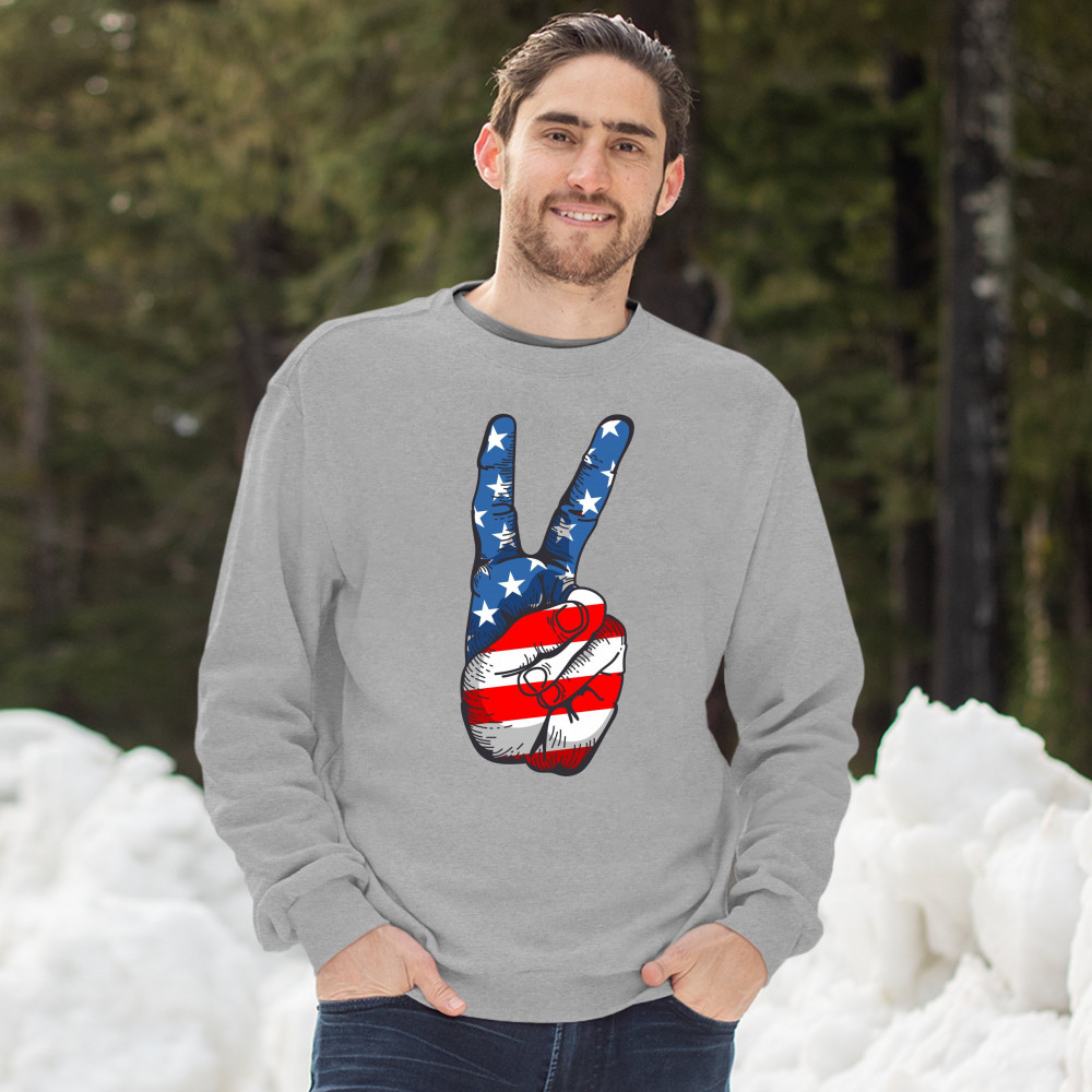 PATRIOTIC VICTORY SIGN sweatshirt american flag usa independence day crewneck gray