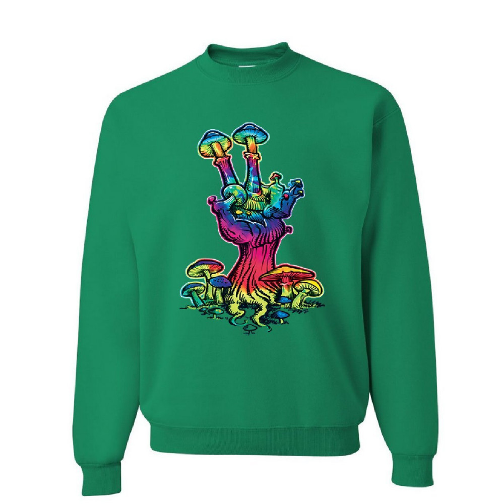 MUSHROOM PEACE peace mushroom sweatshirt shroom hippie fungi colorful neon love sweater green