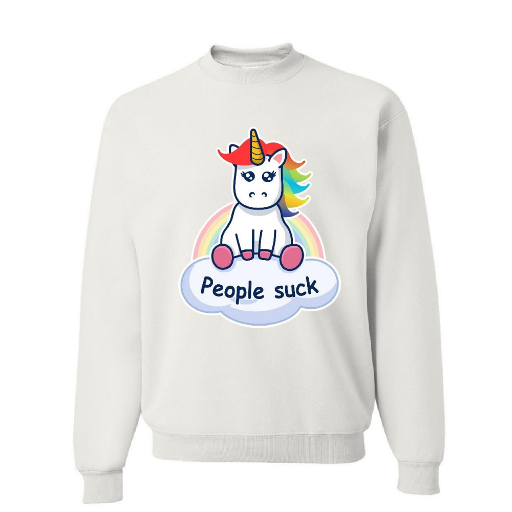 PEOPLE SUCK cute unicorn sweatshirt funny rainbow pony introvert sweater white