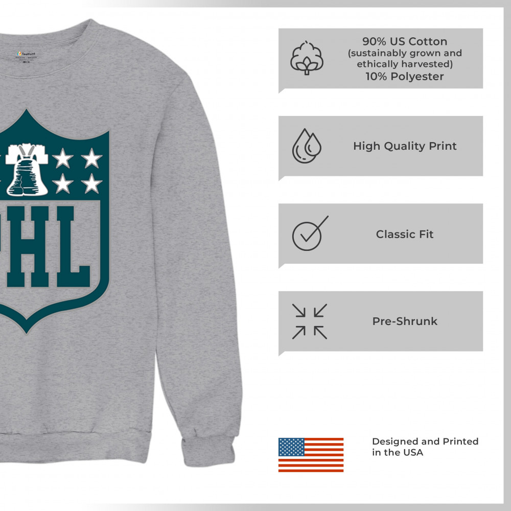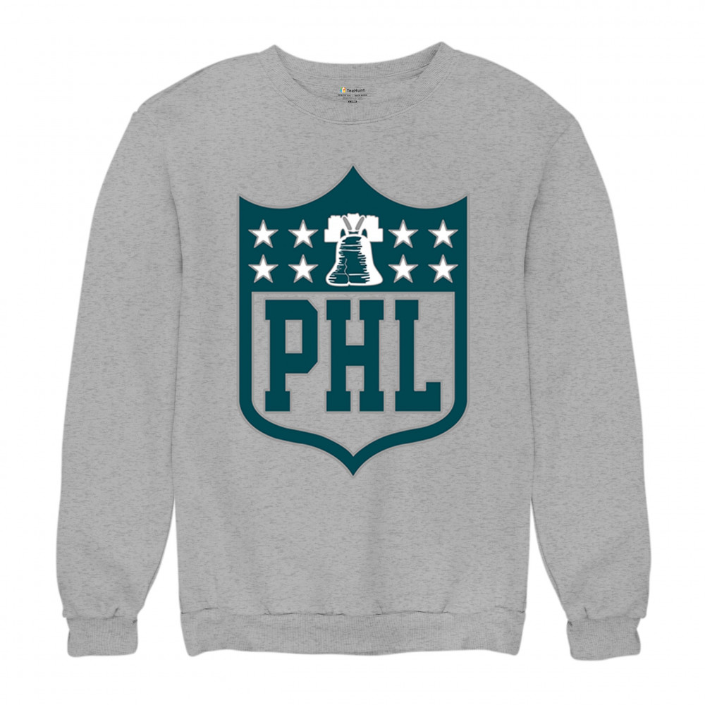Bold PHL shield with liberty bell, perfect for Sunday football, big game energy, and Philadelphia pride for true fans.