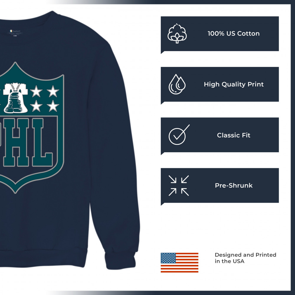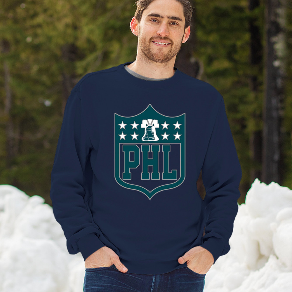 Bold PHL shield with liberty bell, perfect for Sunday football, big game energy, and Philadelphia pride for true fans.