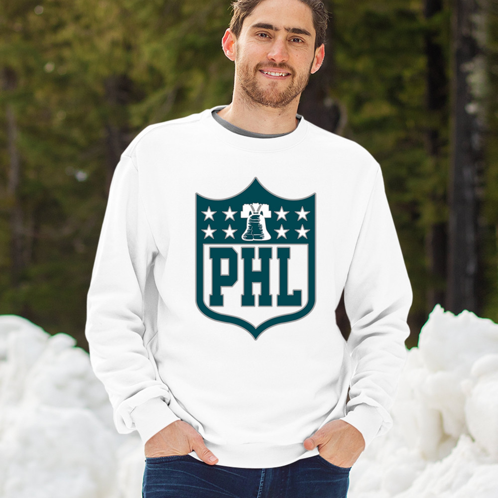 Bold PHL shield with liberty bell, perfect for Sunday football, big game energy, and Philadelphia pride for true fans.
