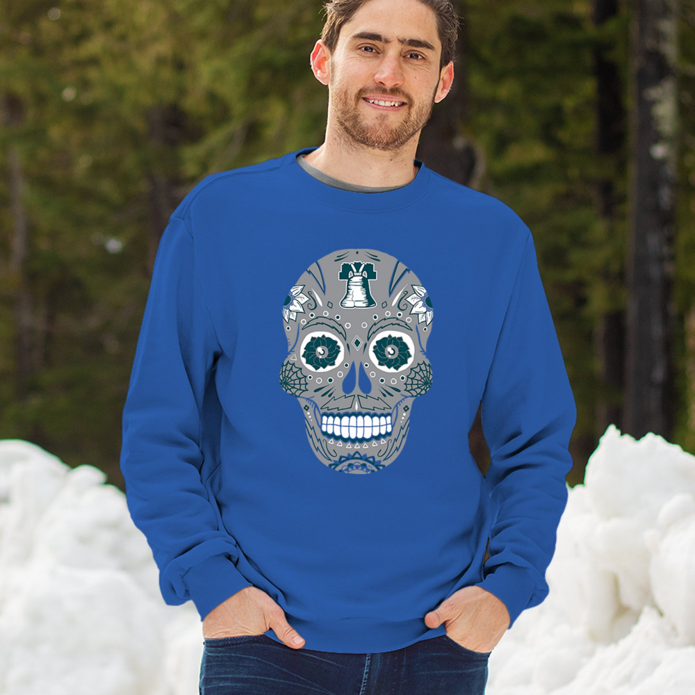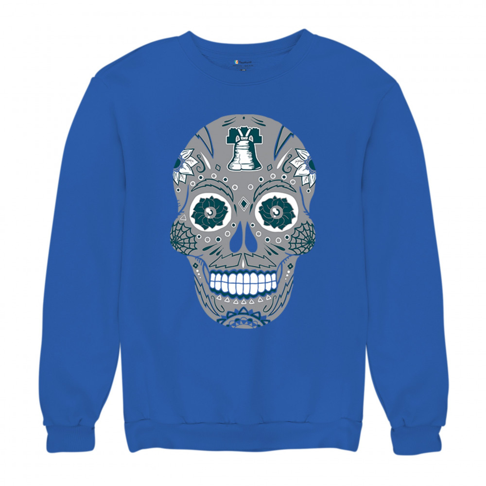 Philly meets tradition in this Sugar Skull design, mixing calavera art with the iconic liberty bell and marigold flowers. Perfect for Philly sports culture, fantasy league energy, or game day skull vibes, it captures Philly gothic art and fan zone spirit. A unique way to honor Dia de los Muertos while showing local Philadelphia pride and heritage in bold style.