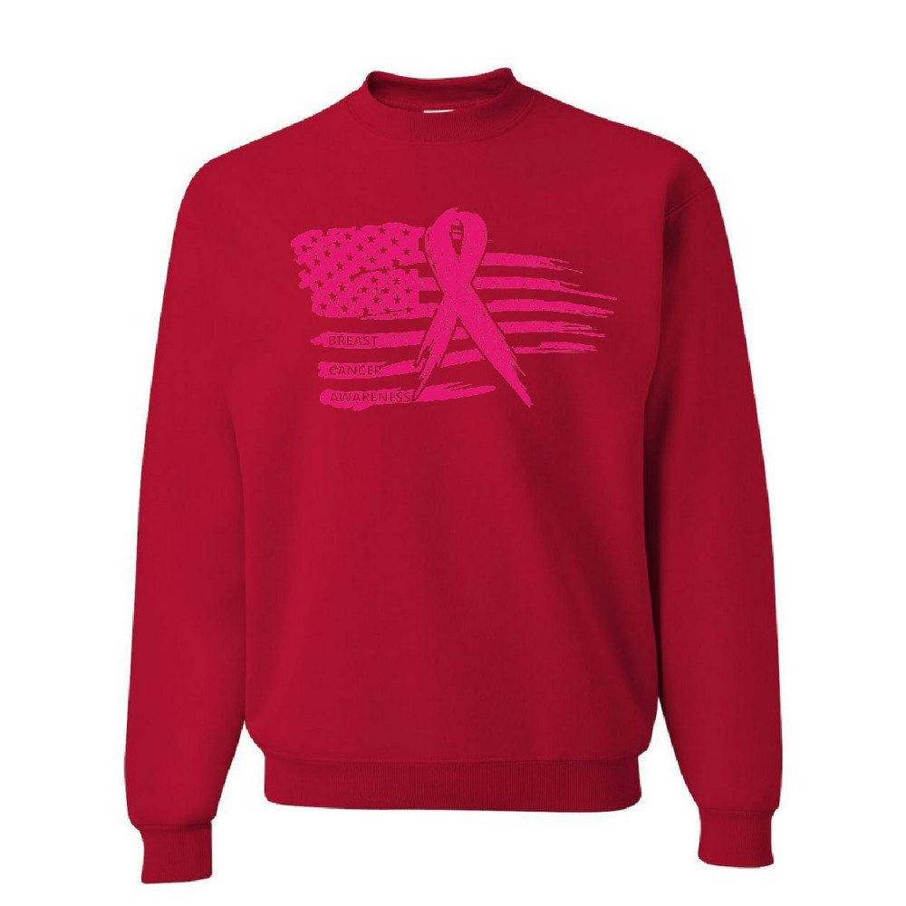 PINK RIBBON AMERICAN FLAG pink ribbon flag sweatshirt breast cancer awareness hope survivor sweater red