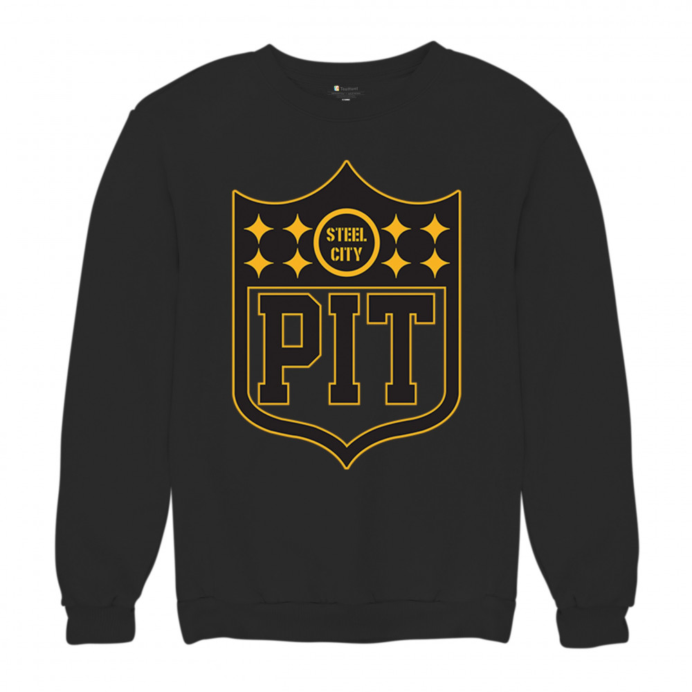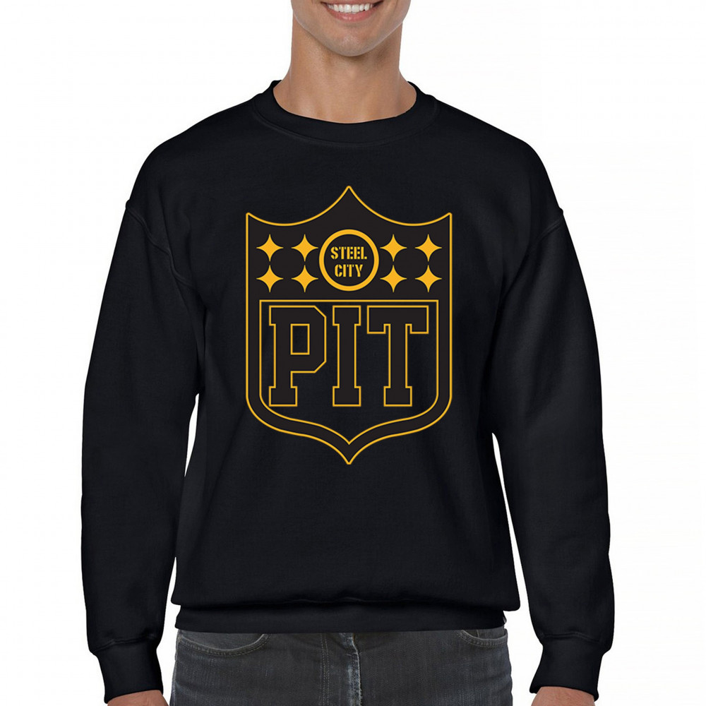 Steel City PIT shield football gear celebrating Pittsburgh football nation, gridiron tradition, playoff vibes, and sports heritage.