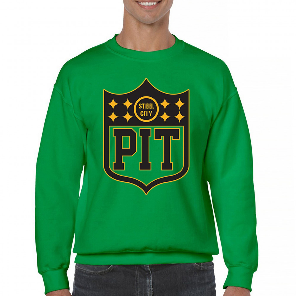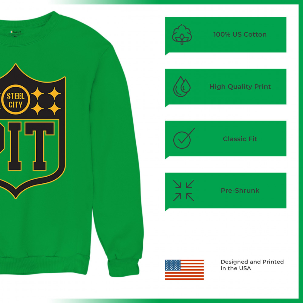 Steel City PIT shield football gear celebrating Pittsburgh football nation, gridiron tradition, playoff vibes, and sports heritage.