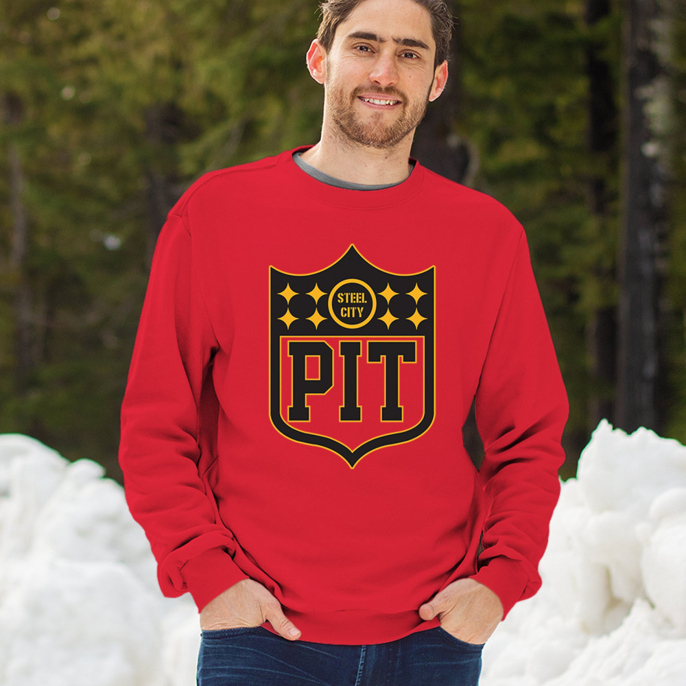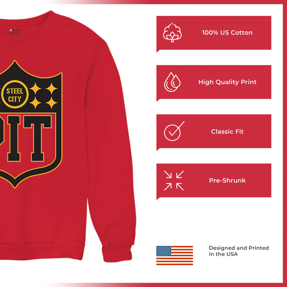 Steel City PIT shield football gear celebrating Pittsburgh football nation, gridiron tradition, playoff vibes, and sports heritage.