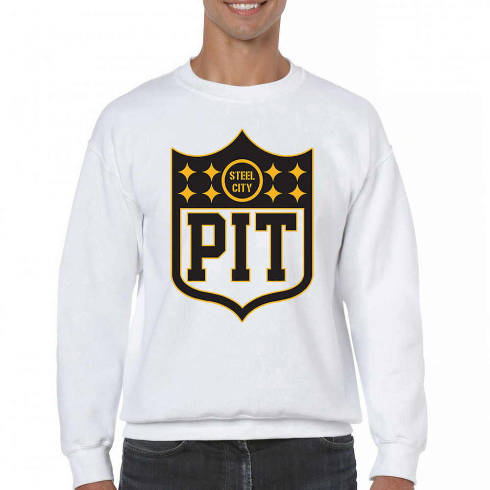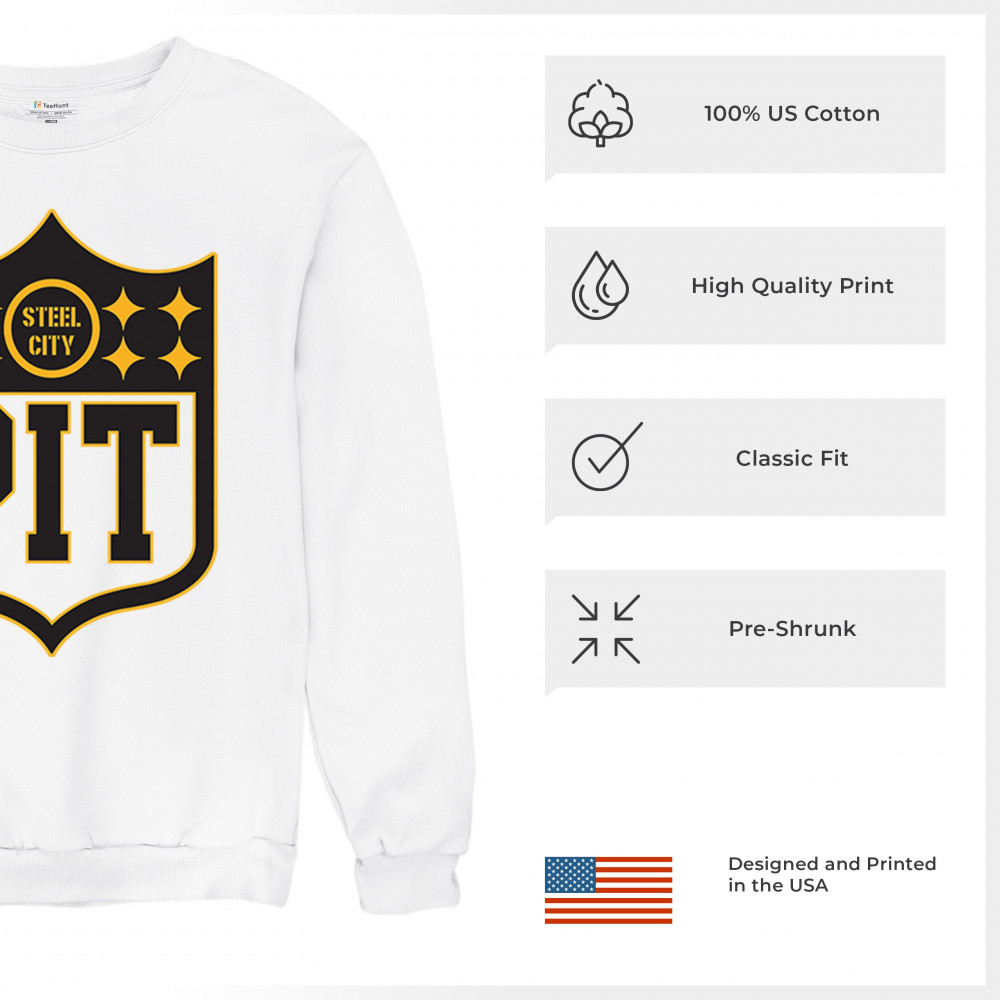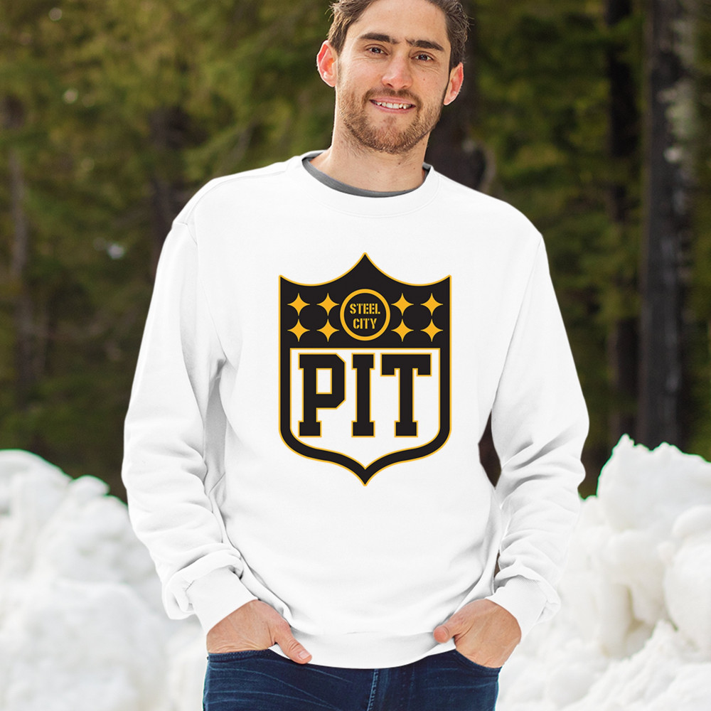 Steel City PIT shield football gear celebrating Pittsburgh football nation, gridiron tradition, playoff vibes, and sports heritage.