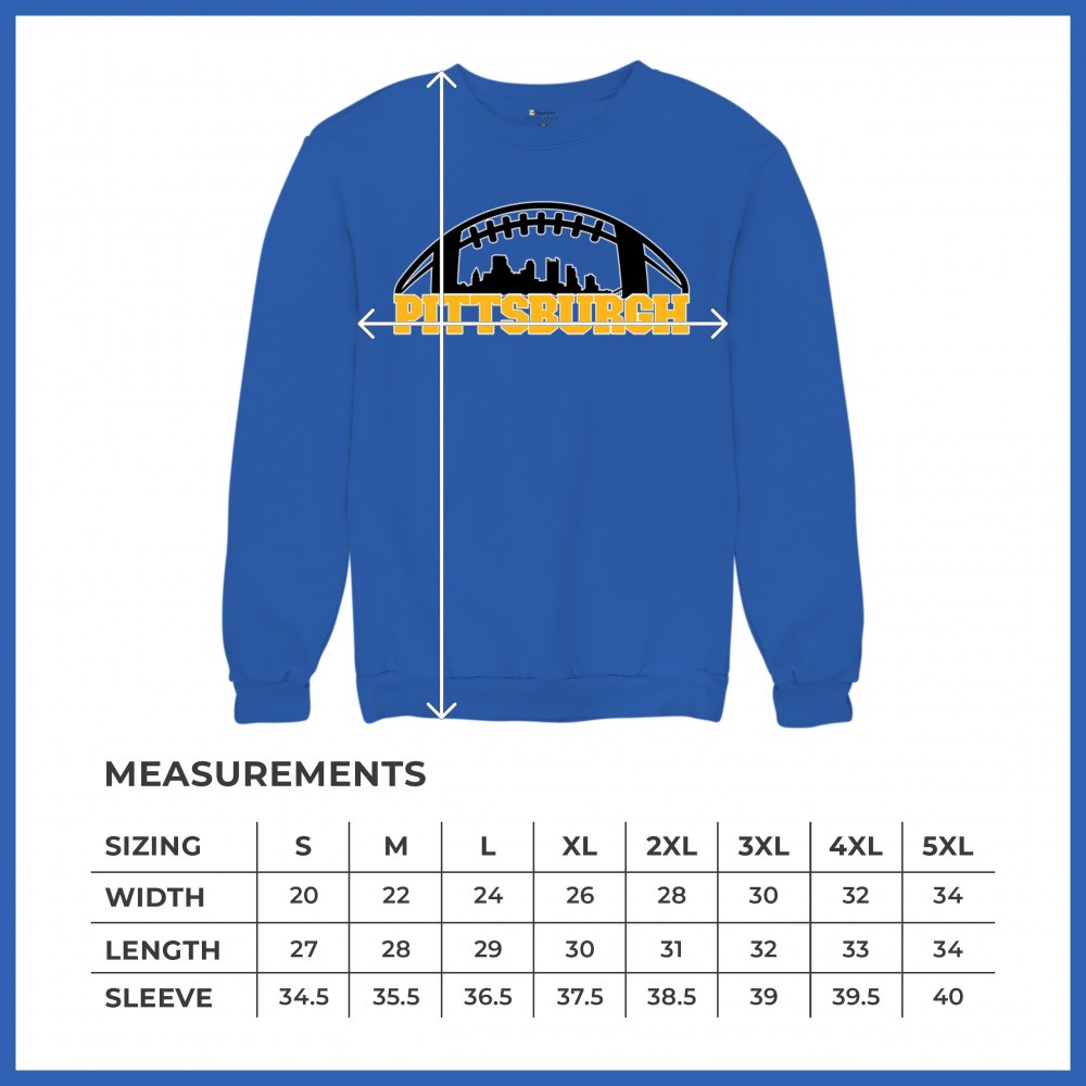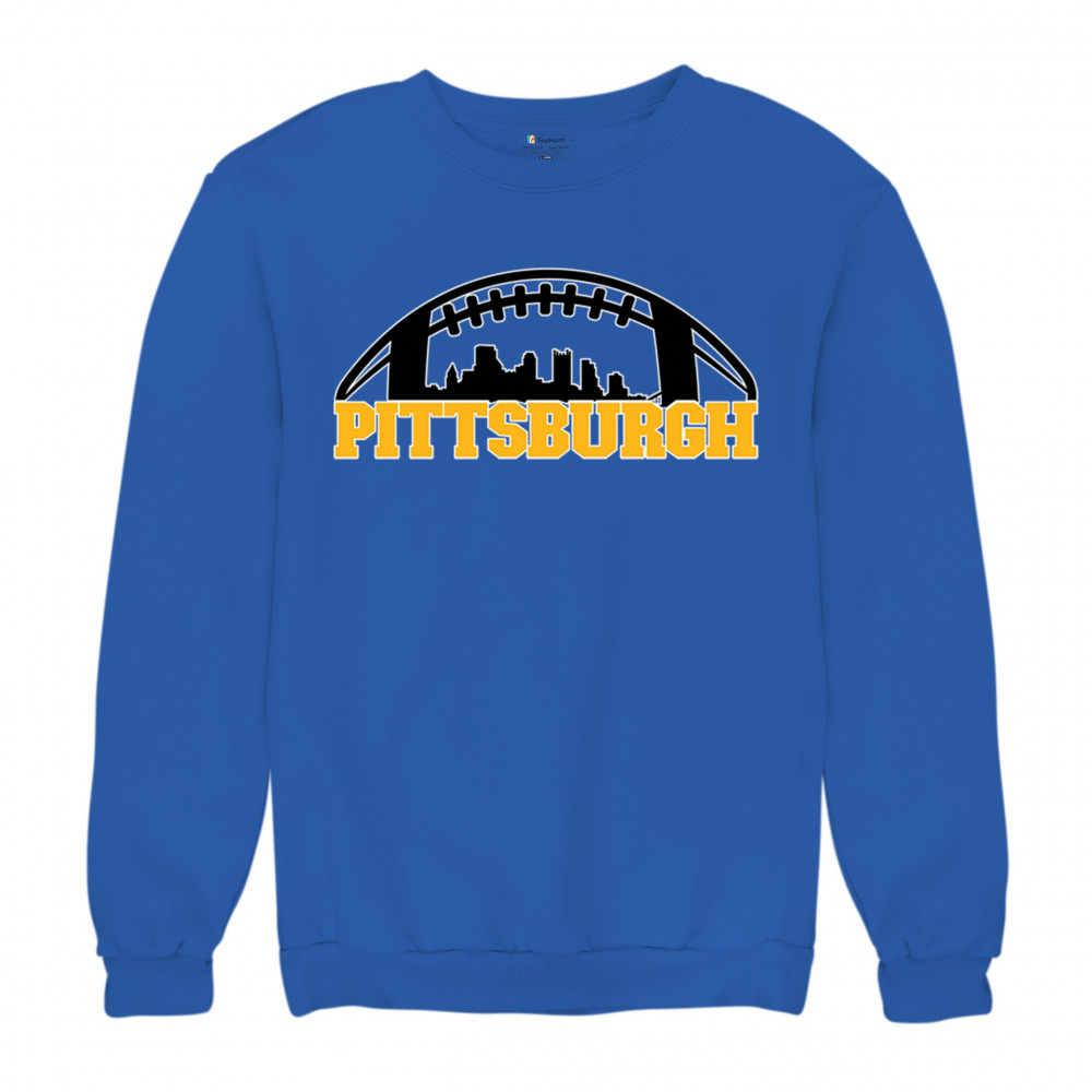 Embrace your Steel City pride with this bold Pittsburgh-themed design, showcasing the city skyline in a unique football graphic. Perfect for game day celebrations, tailgating parties, or everyday wear, this design captures the energy and passion of Pittsburgh's legendary sports culture. Whether you're cheering on your favorite team or representing your city, this design is a must-have for Pittsburgh fans.