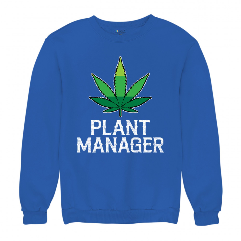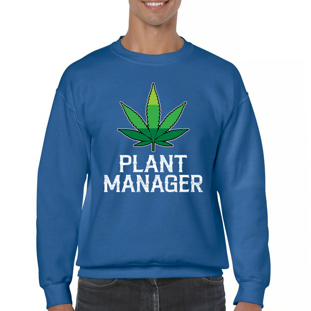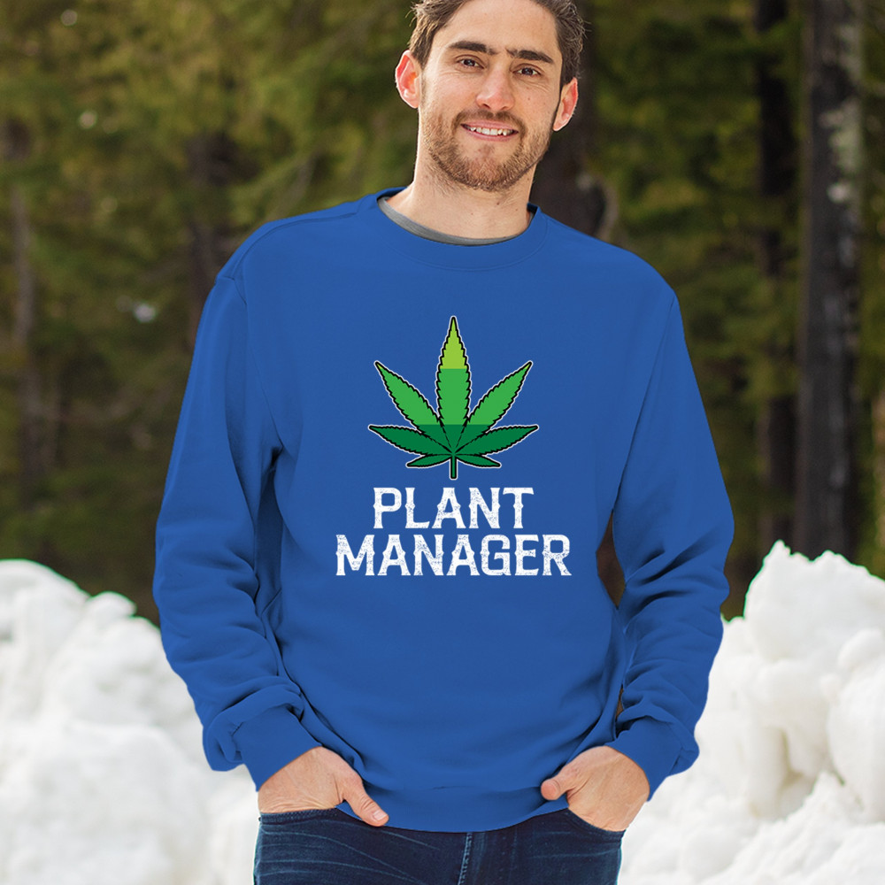 Humorous "Plant Manager" design featuring a bold green cannabis leaf. Perfect for fans of Mary Jane, stoned humor, and relaxed style. Ideal for chill vibes.