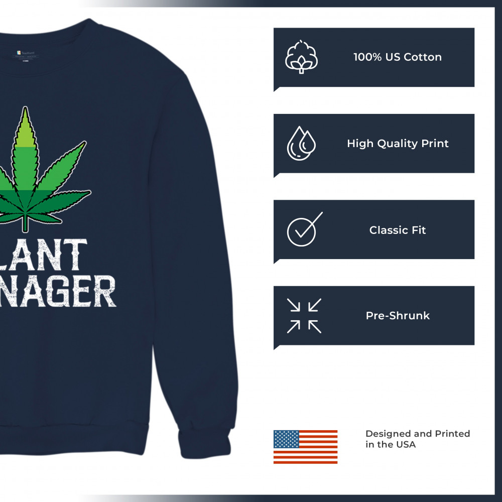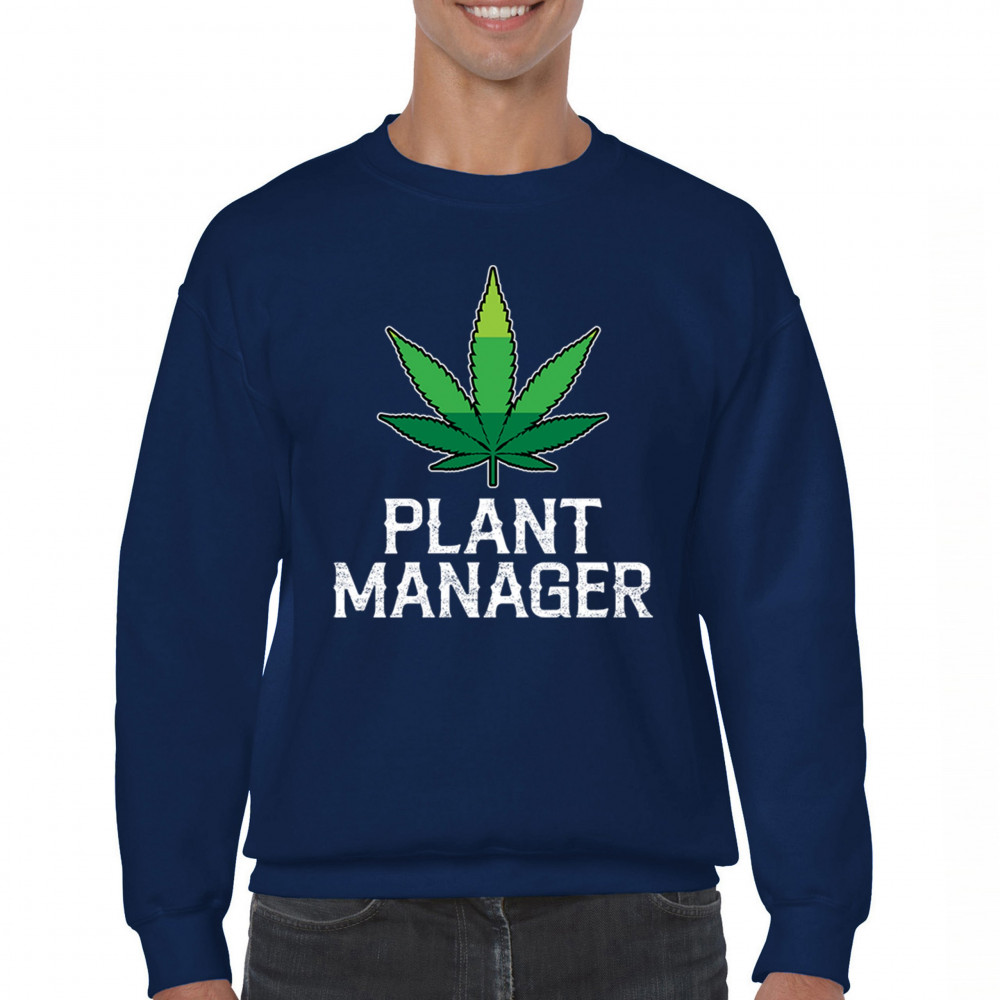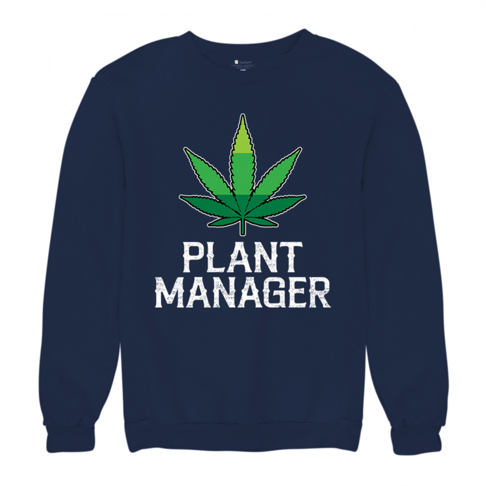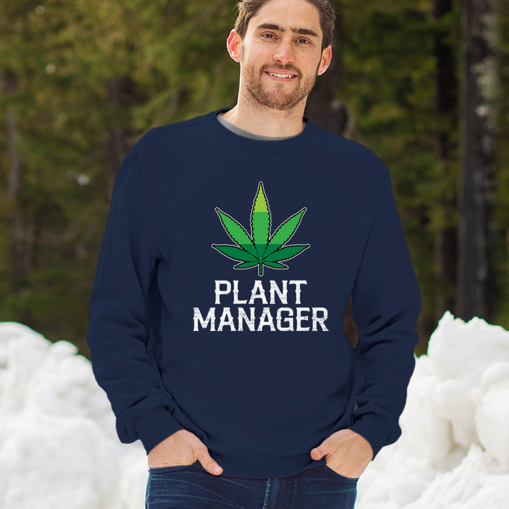 Humorous "Plant Manager" design featuring a bold green cannabis leaf. Perfect for fans of Mary Jane, stoned humor, and relaxed style. Ideal for chill vibes.