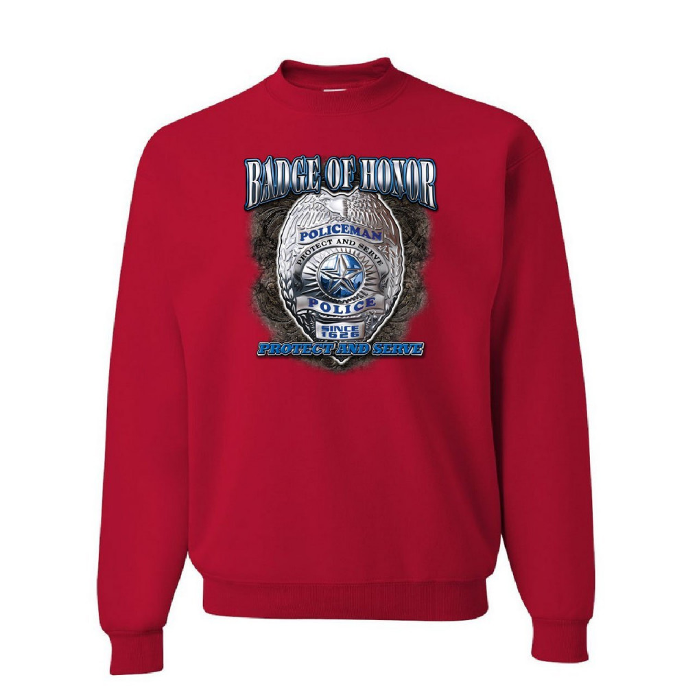 POLICEMAN BADGE OF HONOR sweatshirt police protect and serve cop pd sweater red