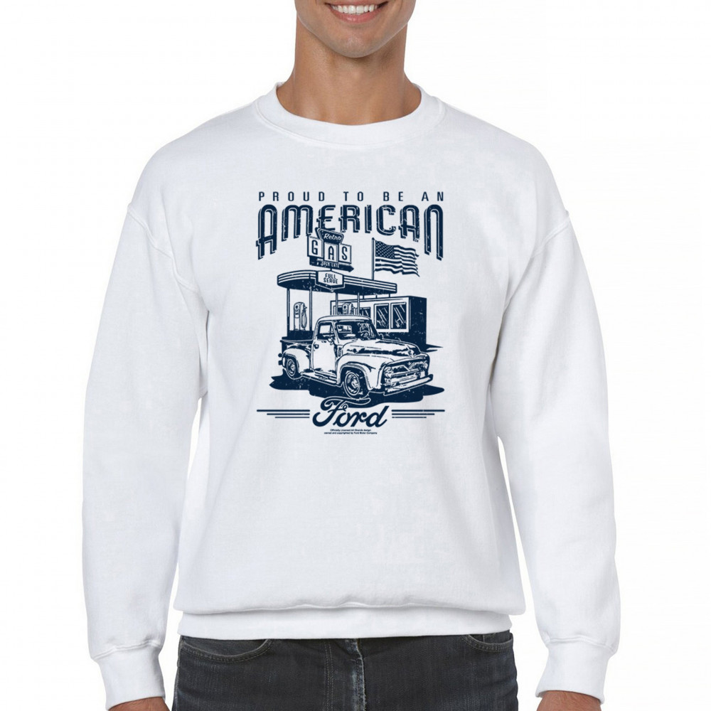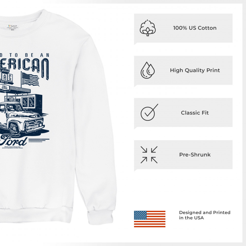 Celebrate Ford's legacy with this vintage 1950s F-Series truck design featuring an American flag. A perfect gift for Ford and classic car enthusiasts.