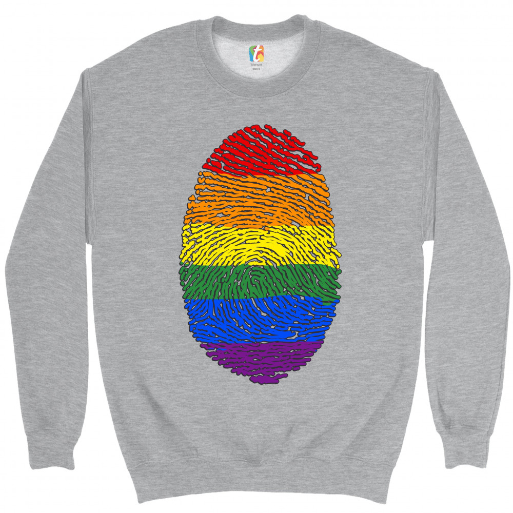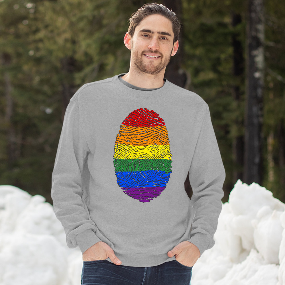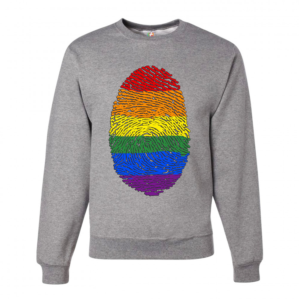 RAINBOW FINGERPRINT sweatshirt gay pride month lgbtq support ally crewneck gray