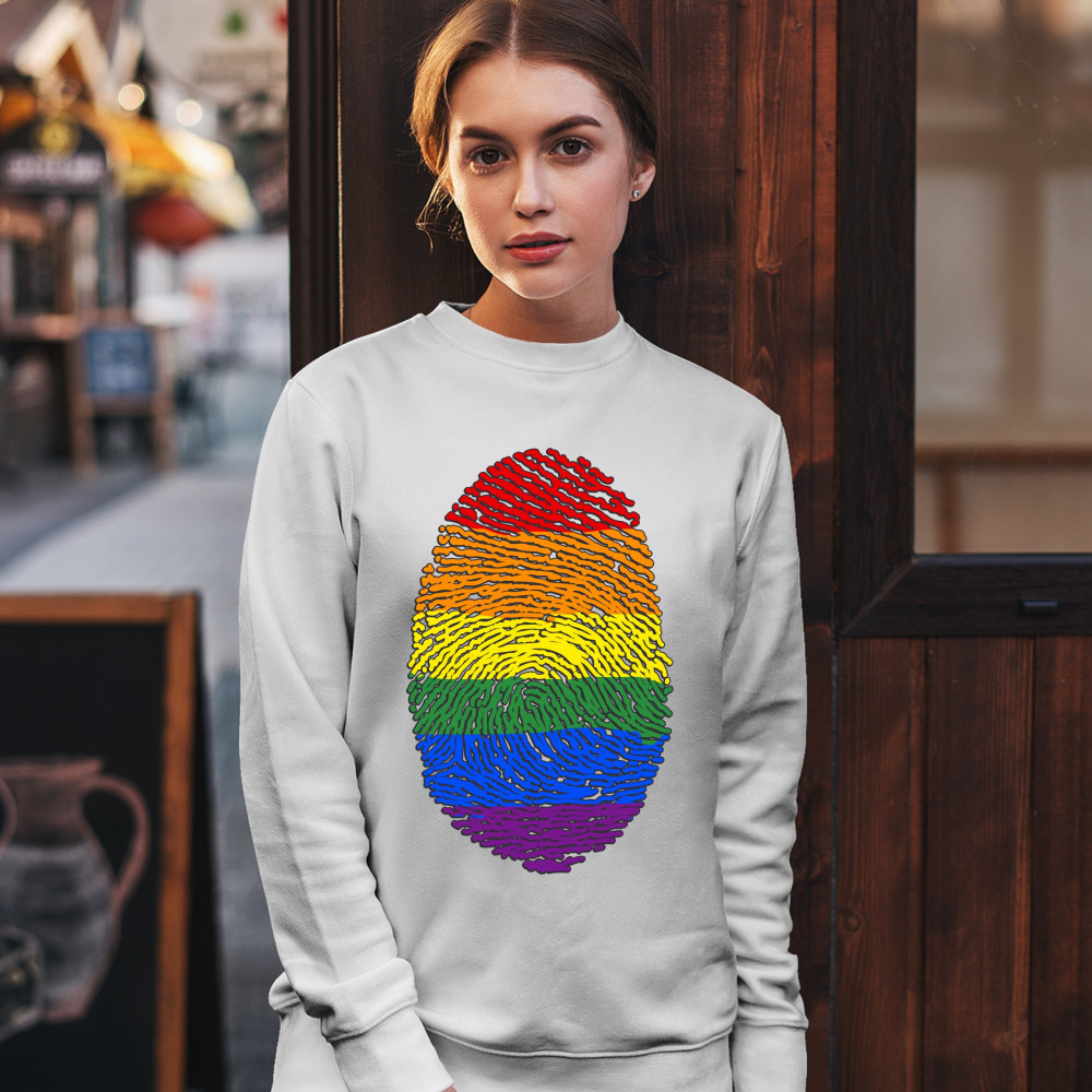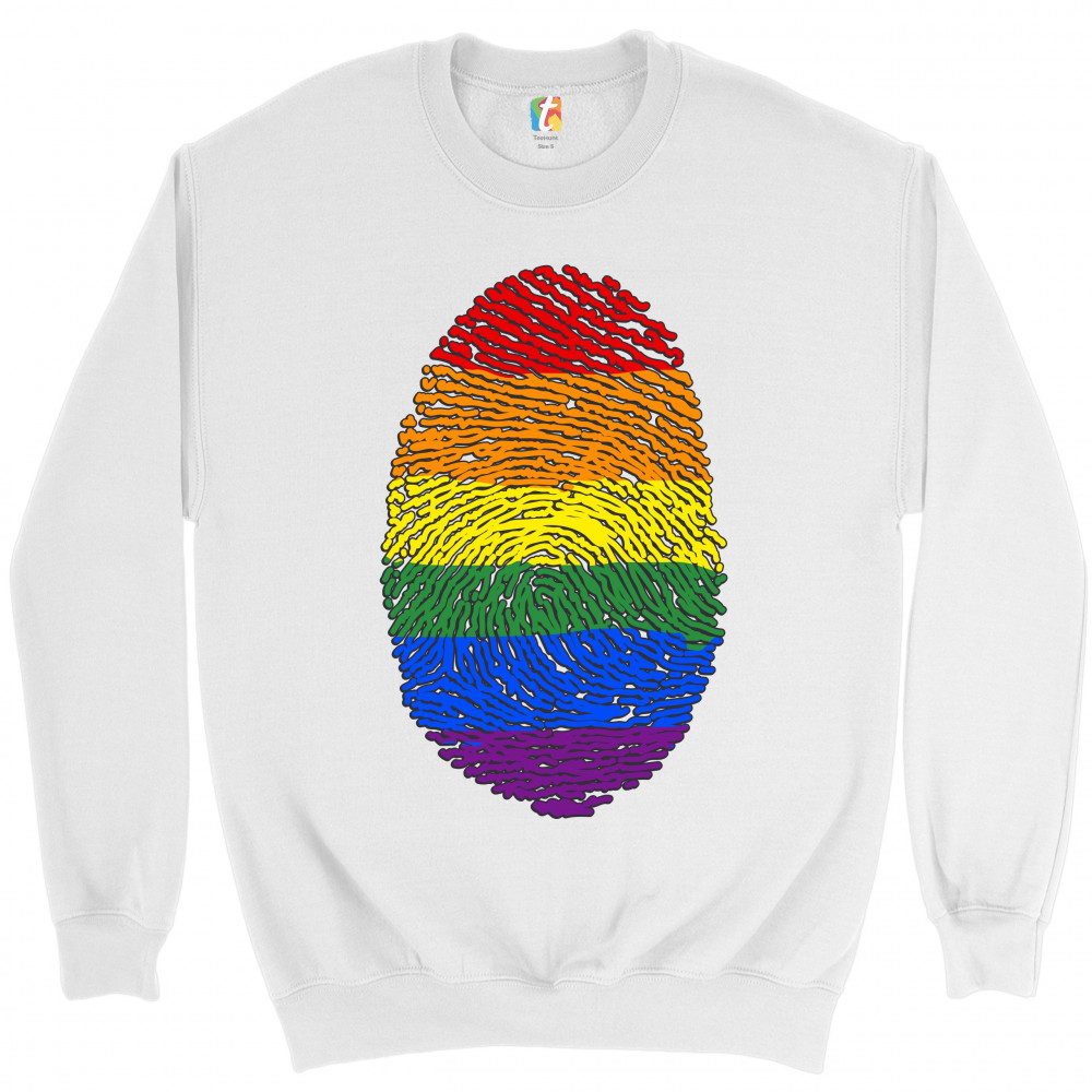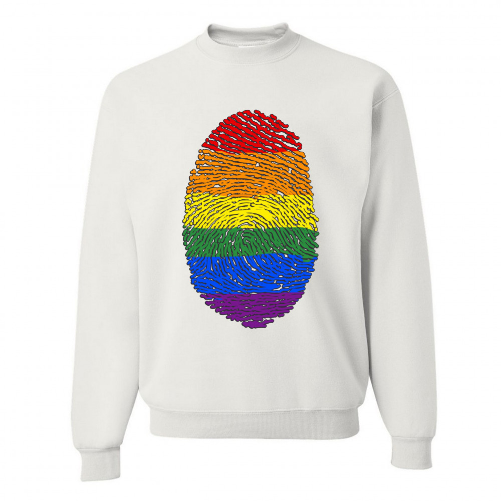 RAINBOW FINGERPRINT sweatshirt gay pride month lgbtq support ally crewneck white