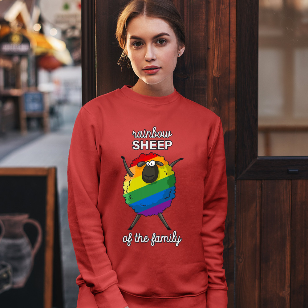 RAINBOW SHEEP OF THE FAMILY sweatshirt gay pride lgbt support funny crewneck red