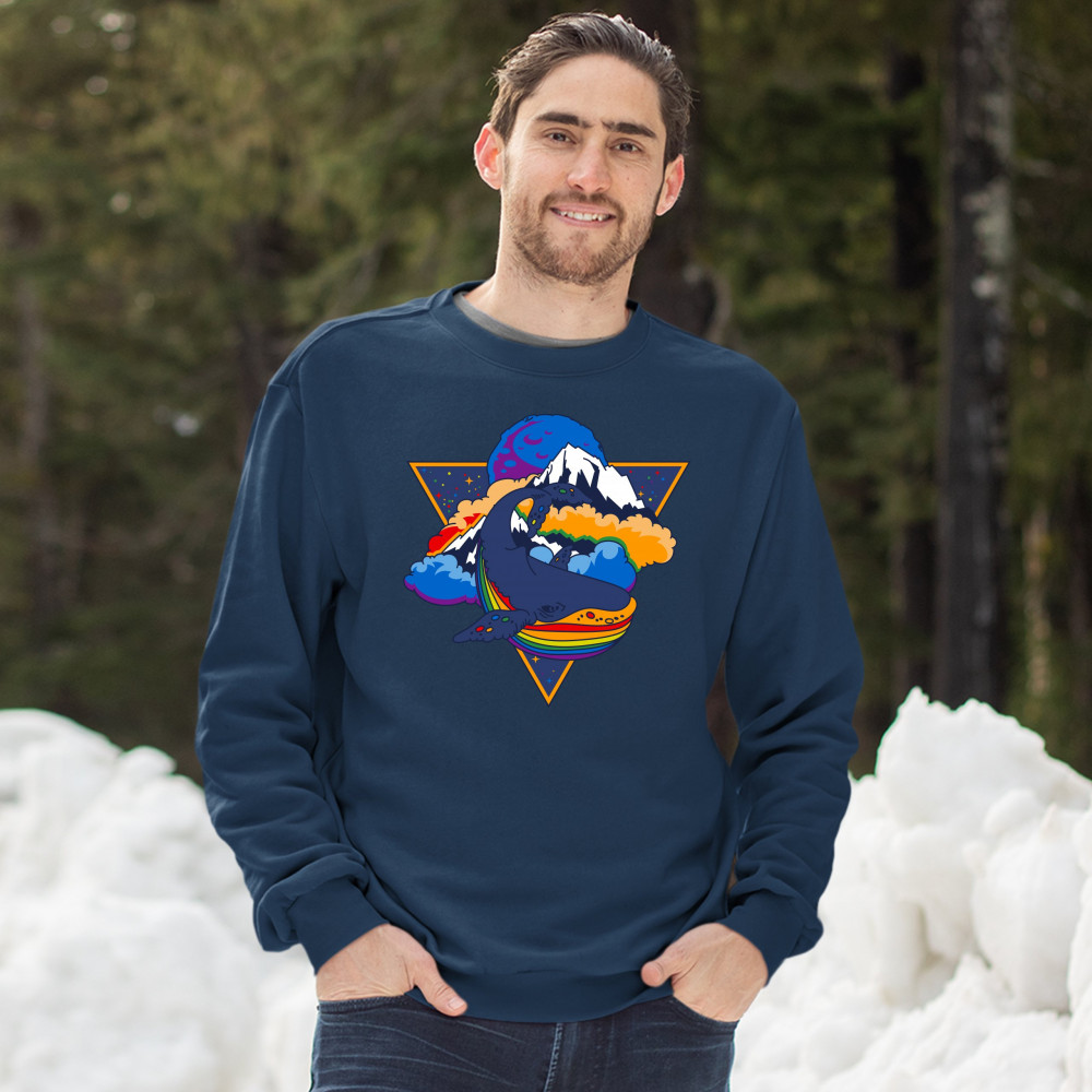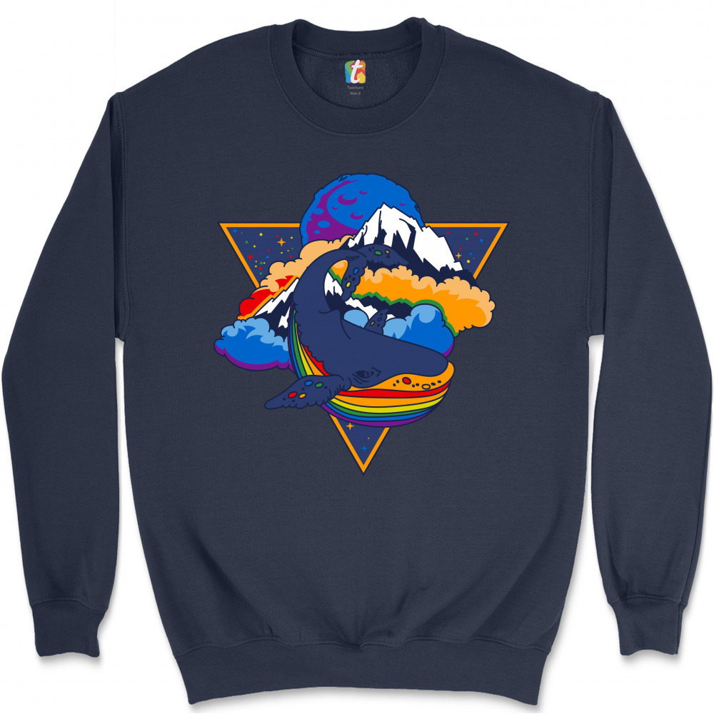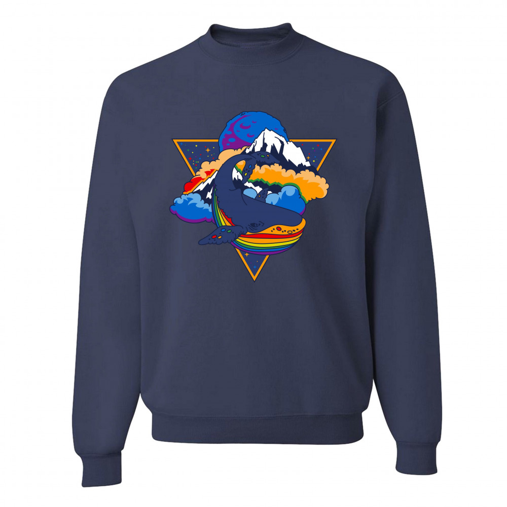 RAINBOW SPACE WHALE sweatshirt lgbt pride queer tolerance trippy crewneck navy blue