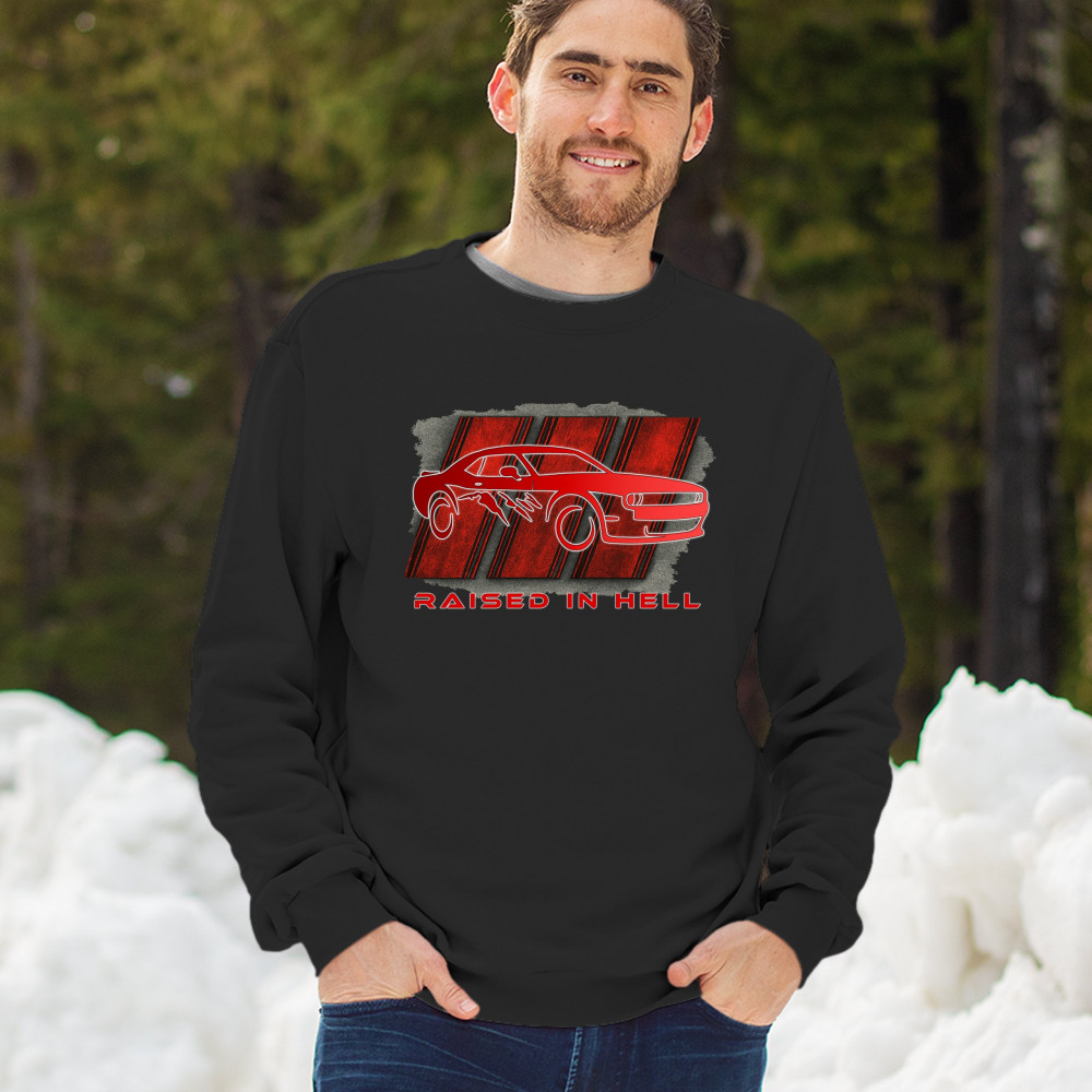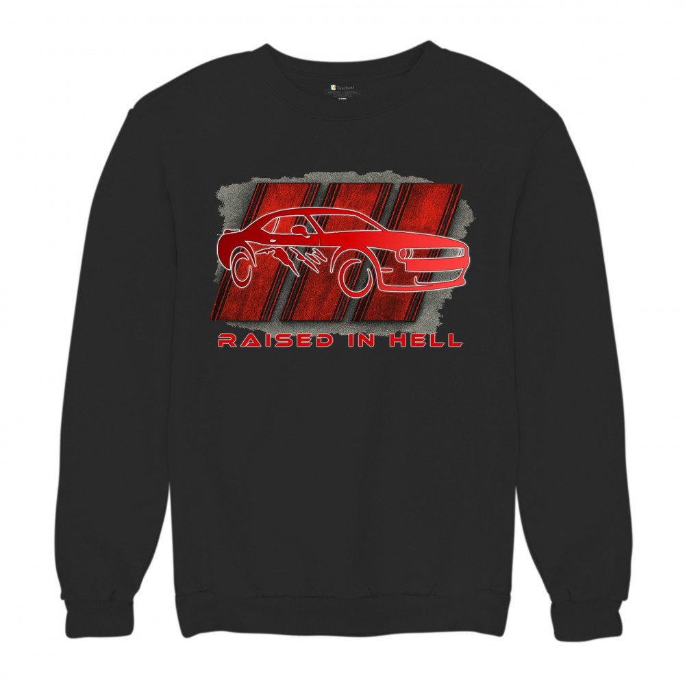 RAISED IN HELL MUSCLE CAR sweatshirt american performance power rt v8 crewneck black