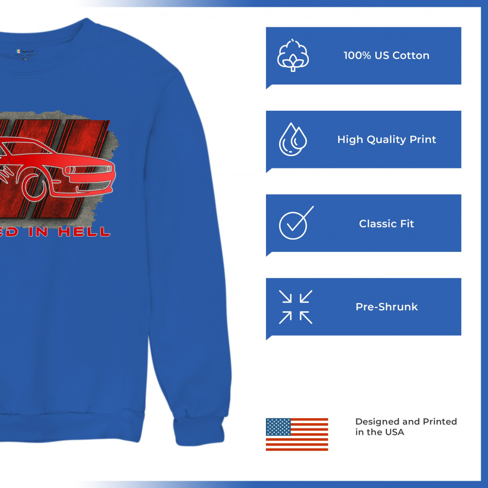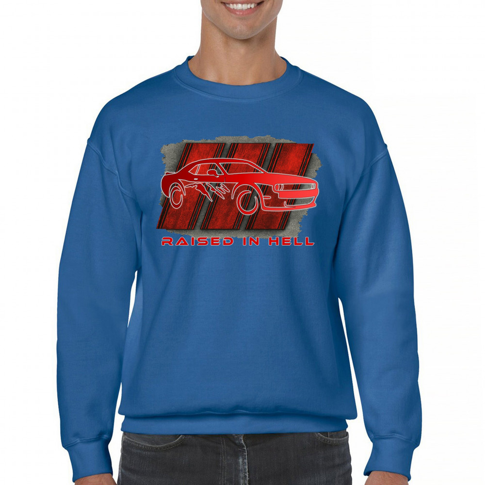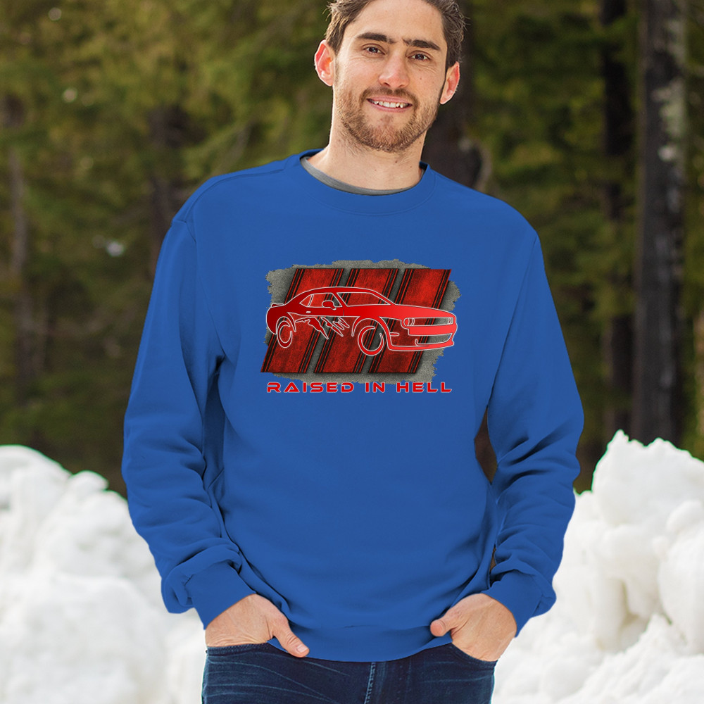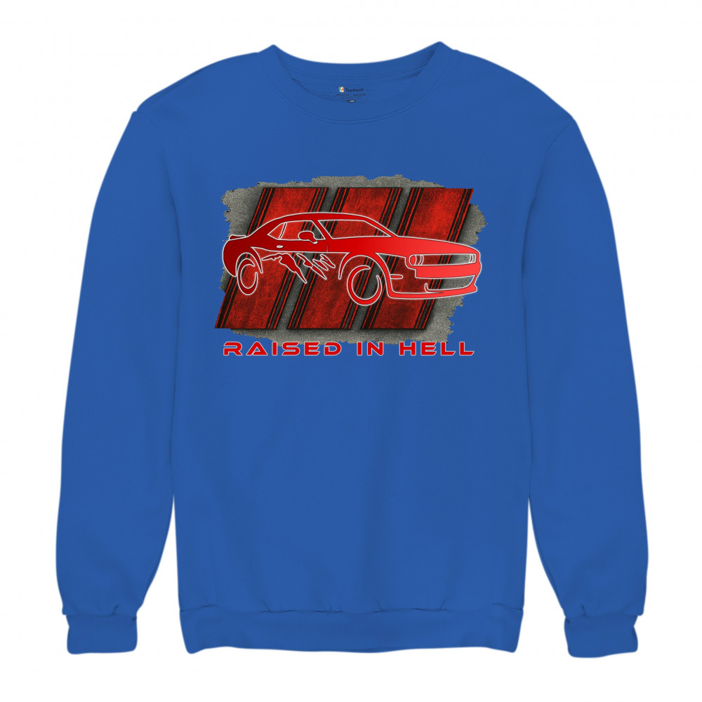 Bring heat to the streets with this Raised in Hell design. Featuring a blazing red muscle car and aggressive claw marks, it's perfect for Scat Pack lovers, burnout warriors, and throttle addicts. Whether you're tearing down the strip or parked at the meet, this design delivers pure muscle attitude and street-born fire.