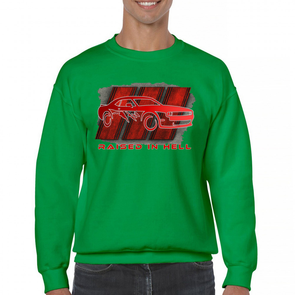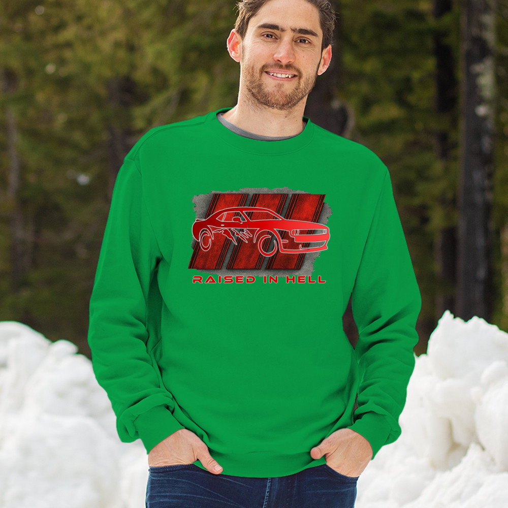Bring heat to the streets with this Raised in Hell design. Featuring a blazing red muscle car and aggressive claw marks, it's perfect for Scat Pack lovers, burnout warriors, and throttle addicts. Whether you're tearing down the strip or parked at the meet, this design delivers pure muscle attitude and street-born fire.