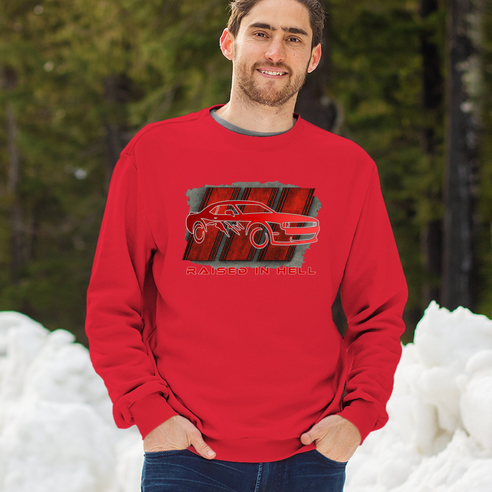Bring heat to the streets with this Raised in Hell design. Featuring a blazing red muscle car and aggressive claw marks, it's perfect for Scat Pack lovers, burnout warriors, and throttle addicts. Whether you're tearing down the strip or parked at the meet, this design delivers pure muscle attitude and street-born fire.