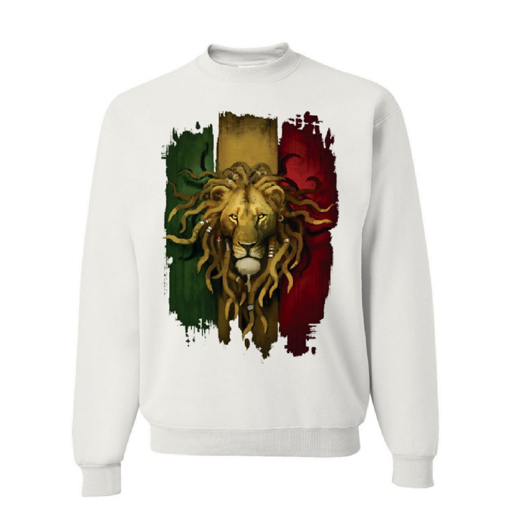 RASTA LION sweatshirt jah jamaica reggae marijuana 420 weed zion sweater white