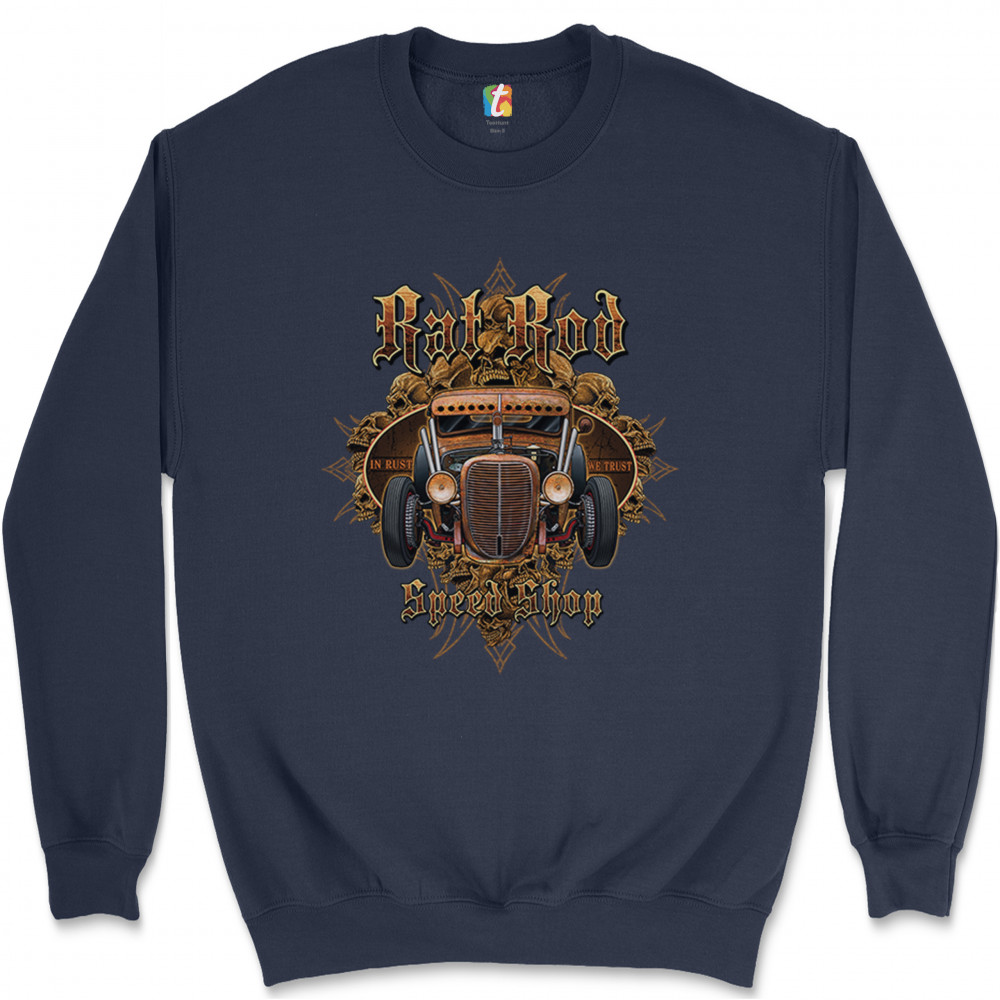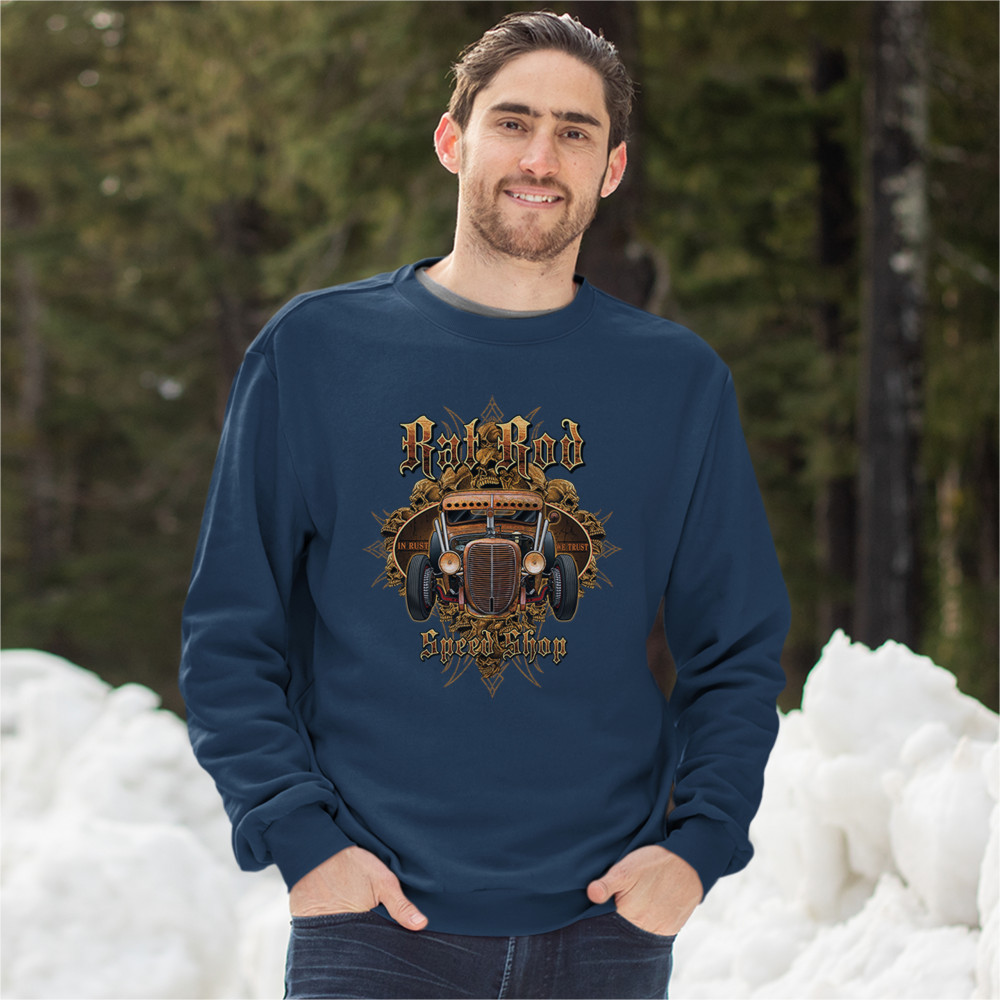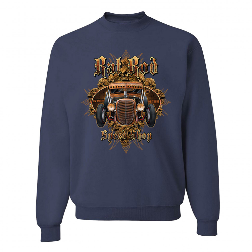 RAT ROD IN RUST WE TRUST sweatshirt hot rod route 66 old school crewneck navy blue