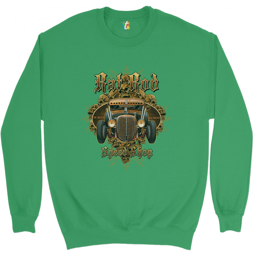 RAT ROD IN RUST WE TRUST sweatshirt hot rod route 66 old school crewneck green