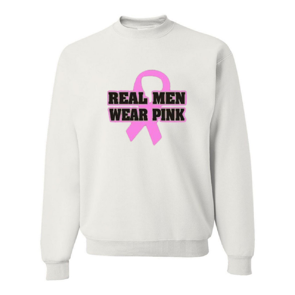 REAL MEN WEAR PINK crew neck sweatshirt breast cancer awareness white