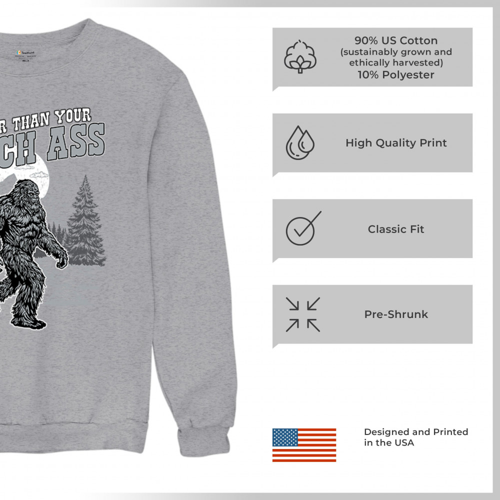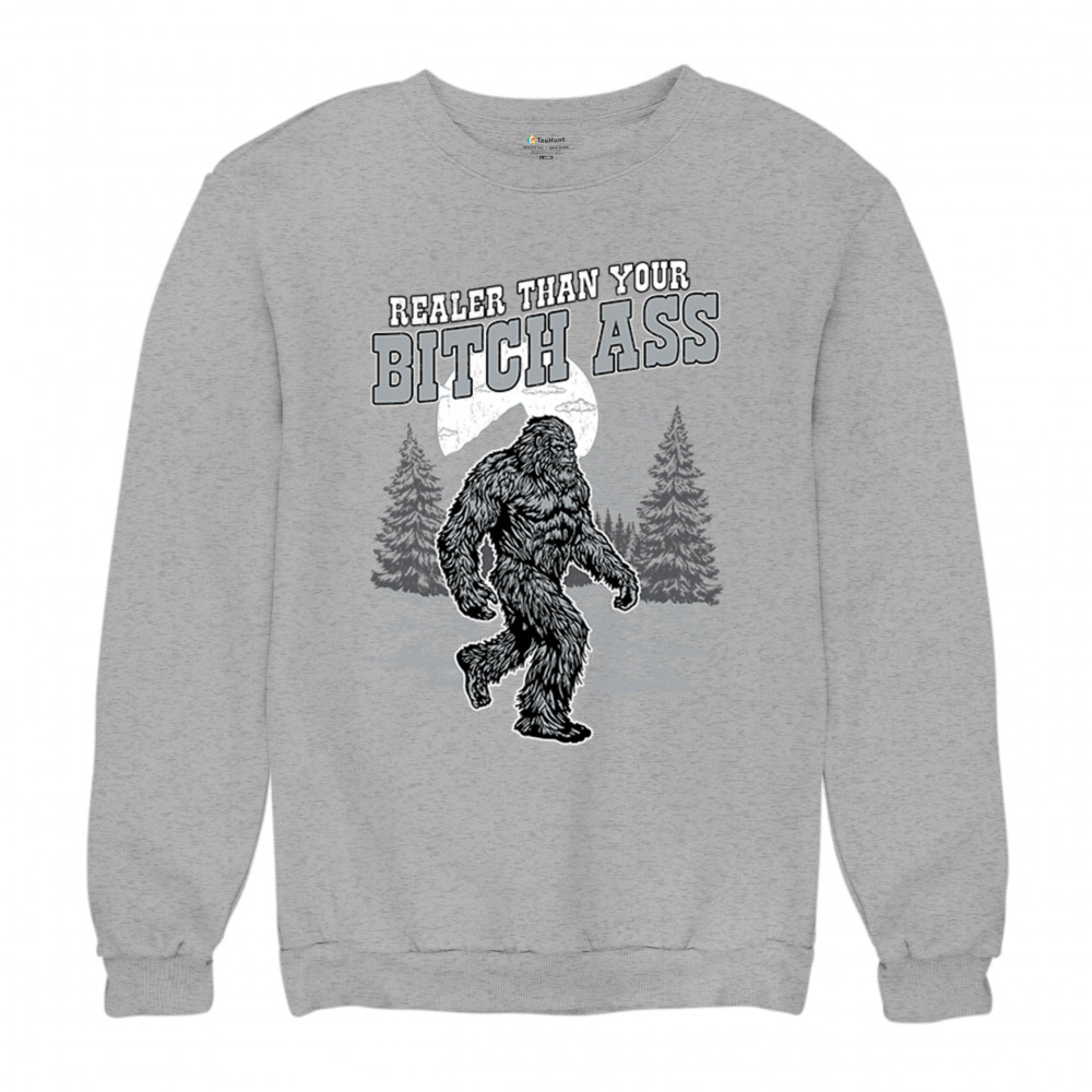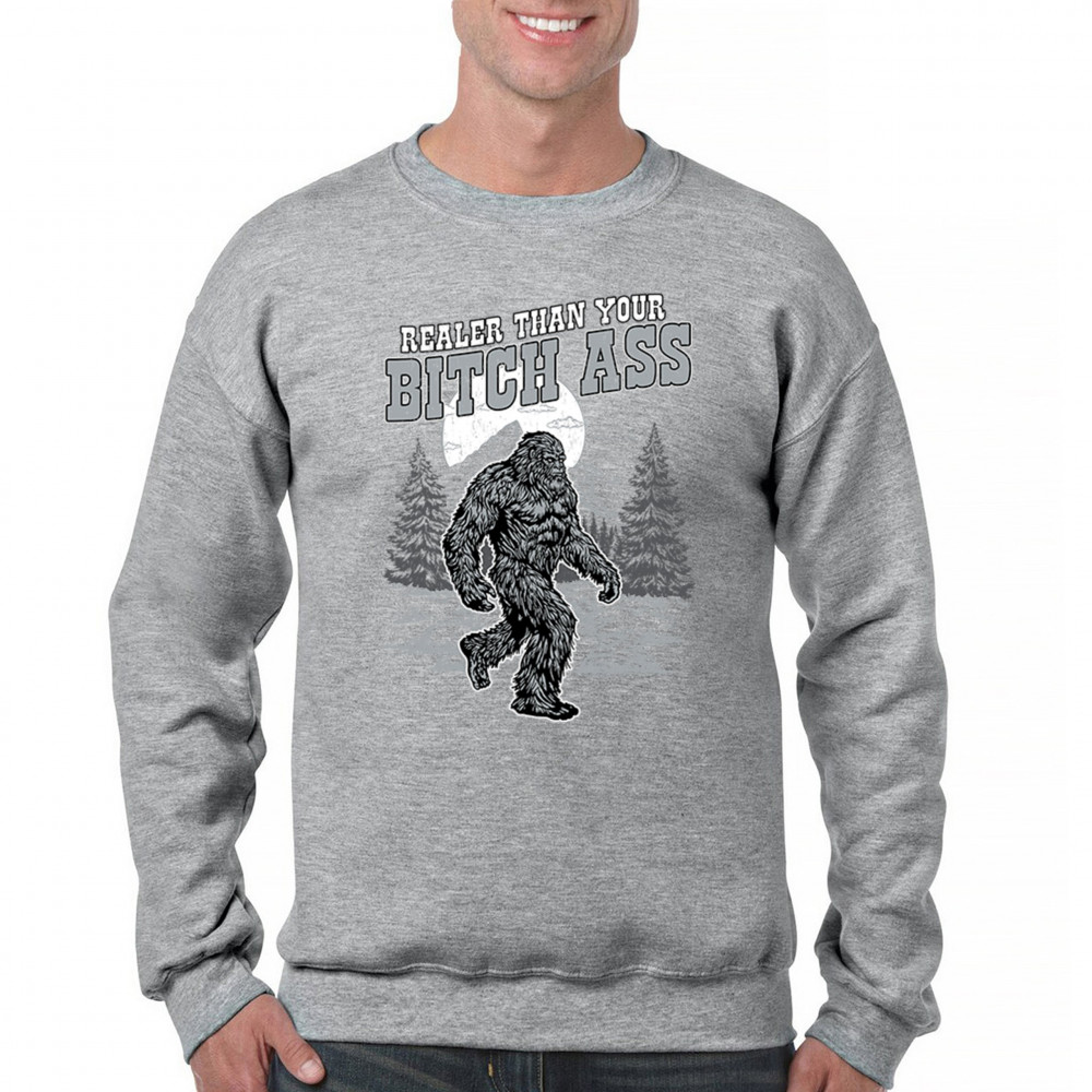 Edgy Bigfoot design with sarcastic cryptid humor and gritty wilderness style. Great for trolls, jokers, and rugged outdoors fans.