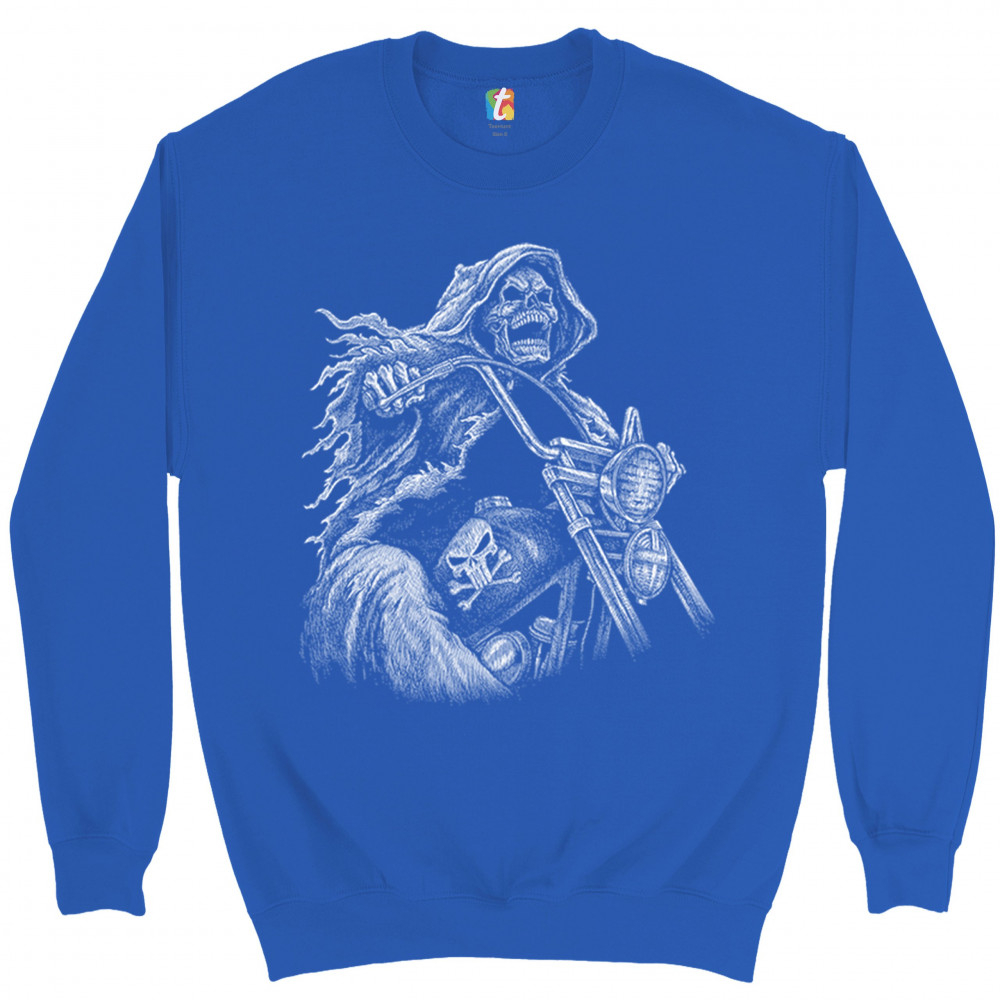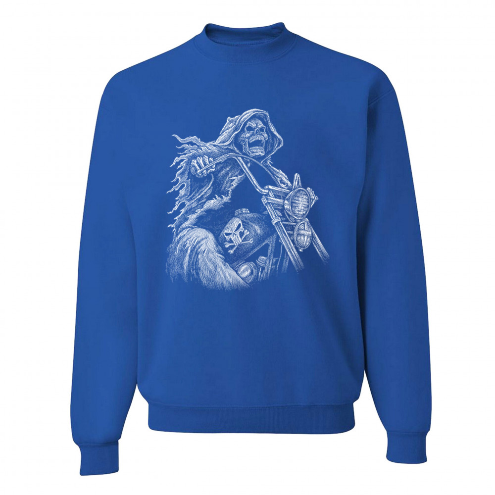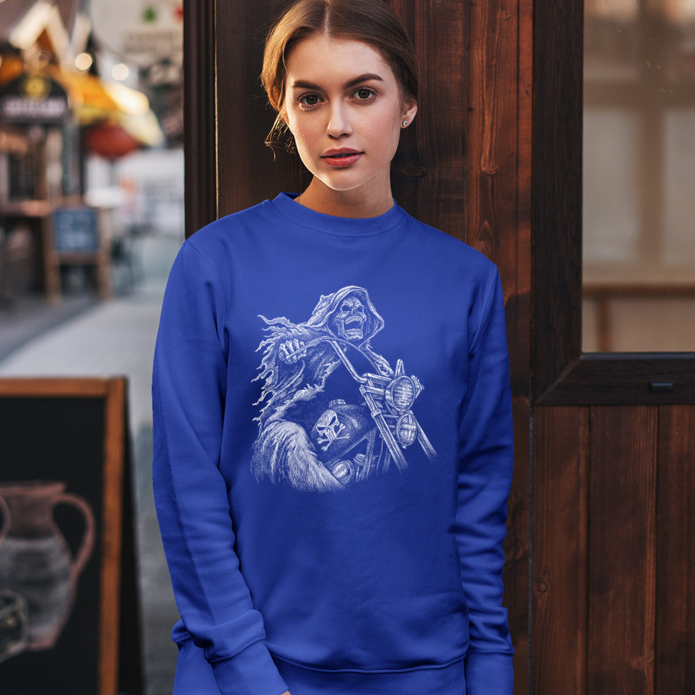 REAPER BIKER sweatshirt ride or die skeleton biker forever motorcycle crewneck royal blue