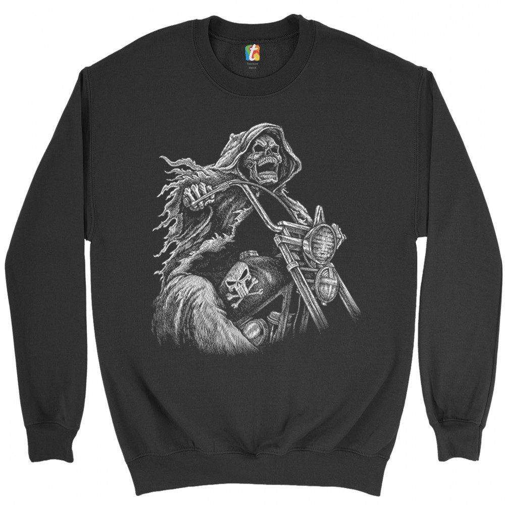 REAPER BIKER sweatshirt ride or die skeleton biker forever motorcycle crewneck black