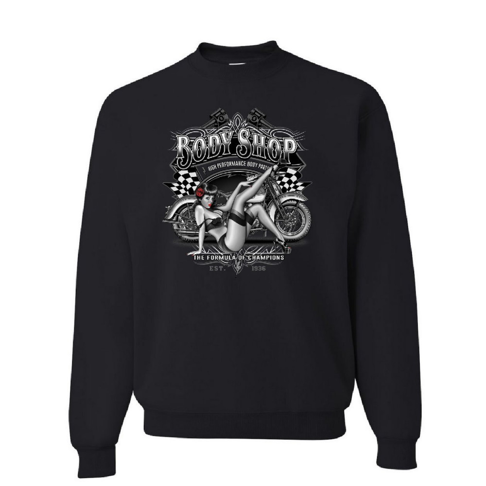RETRO BODY SHOP sweatshirt chopper sexy pin-up girl route 66 biker sweater black