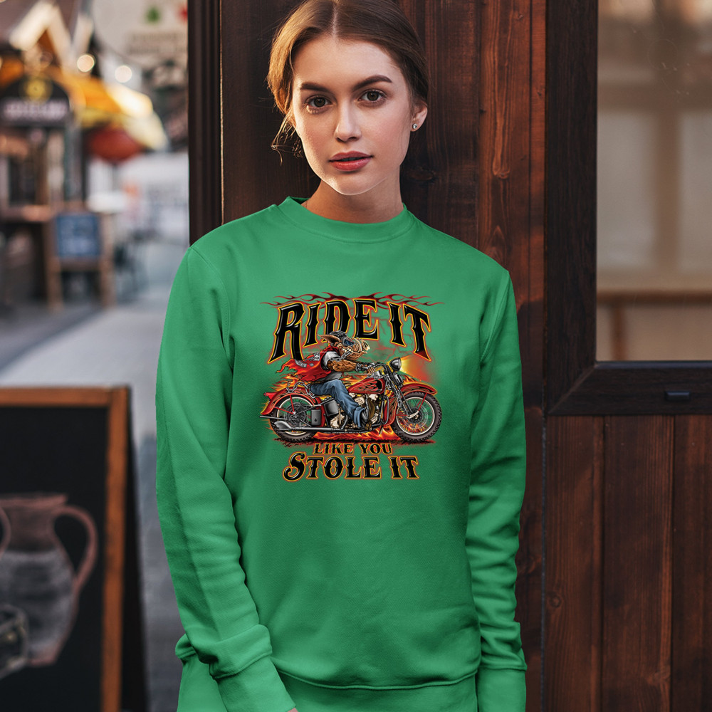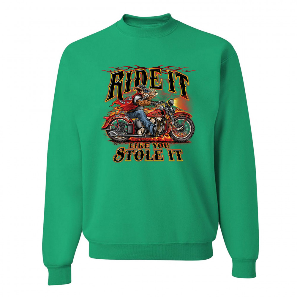 RIDE IT LIKE YOU STOLE IT sweatshirt biker born to be wild motorcycle crewneck green