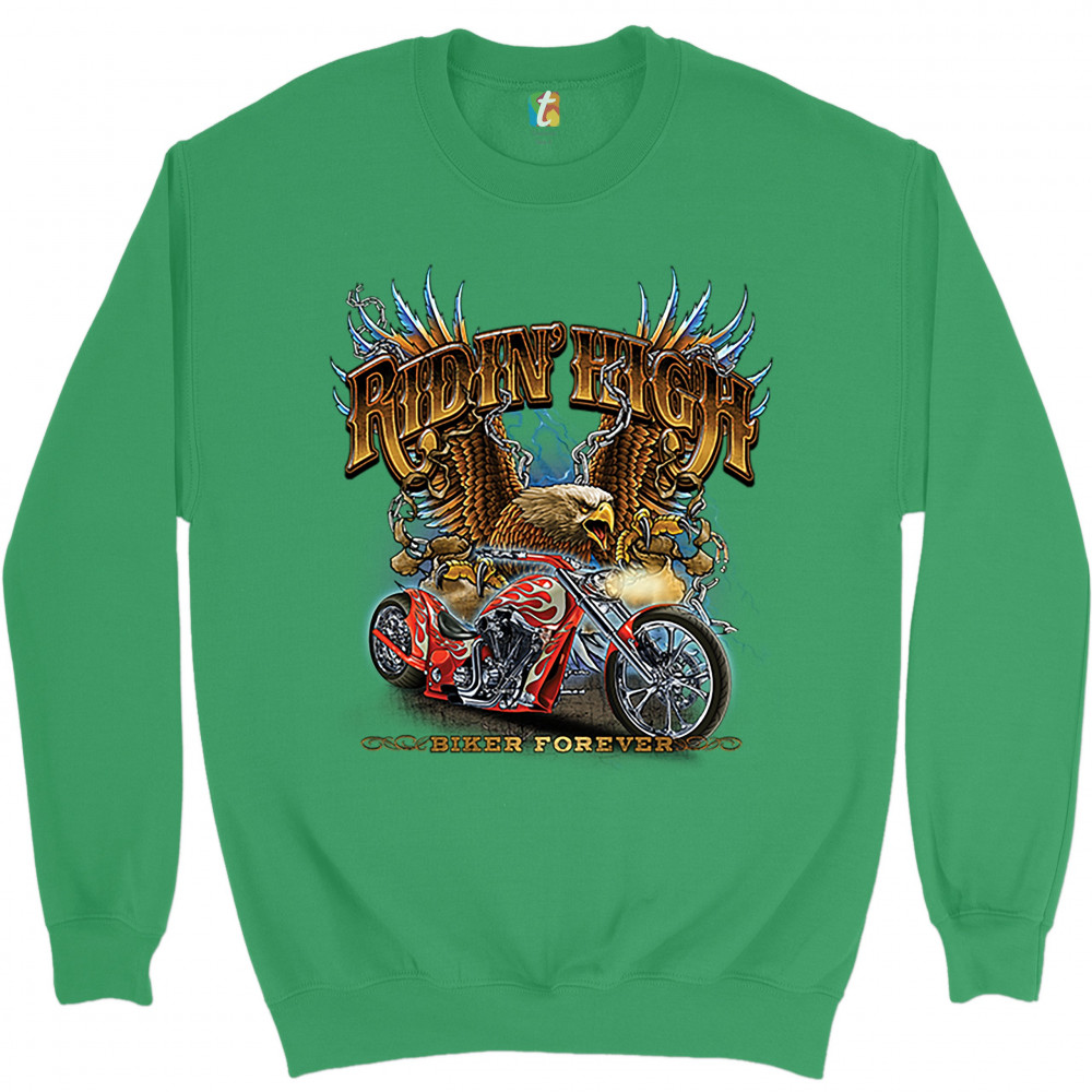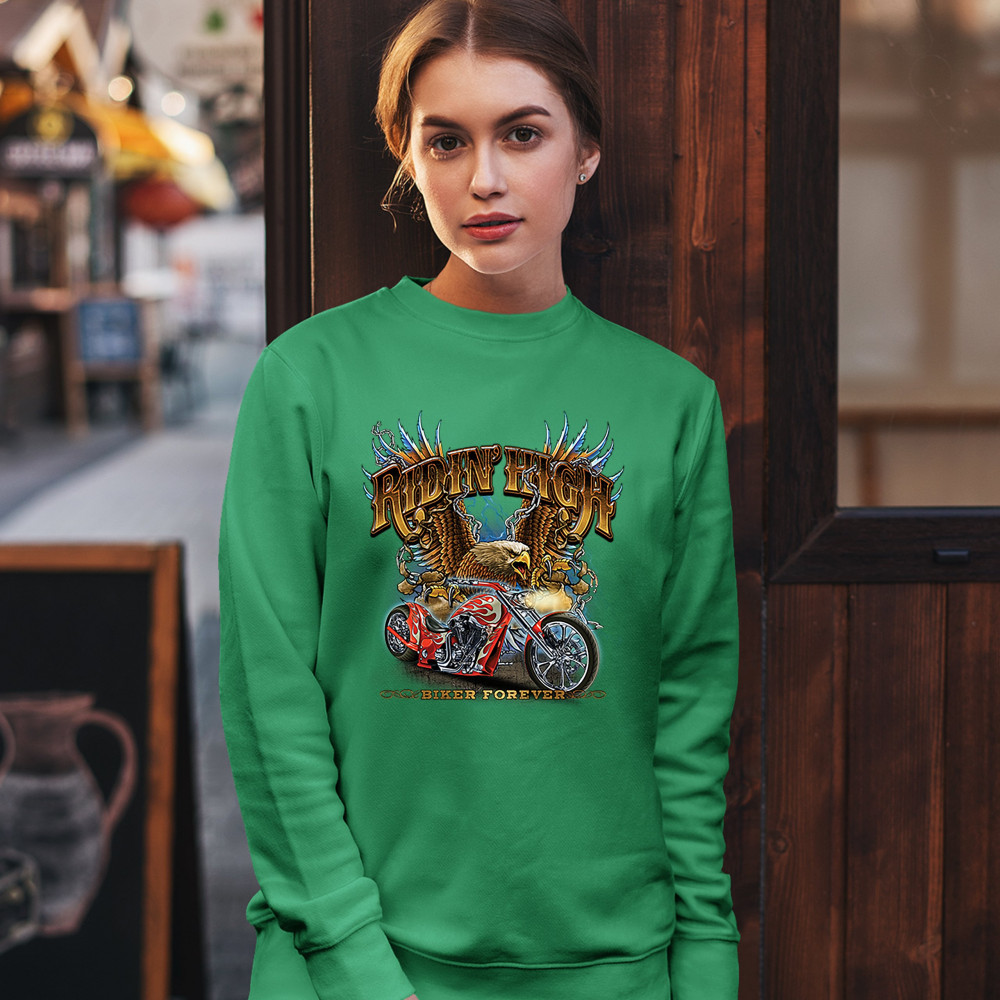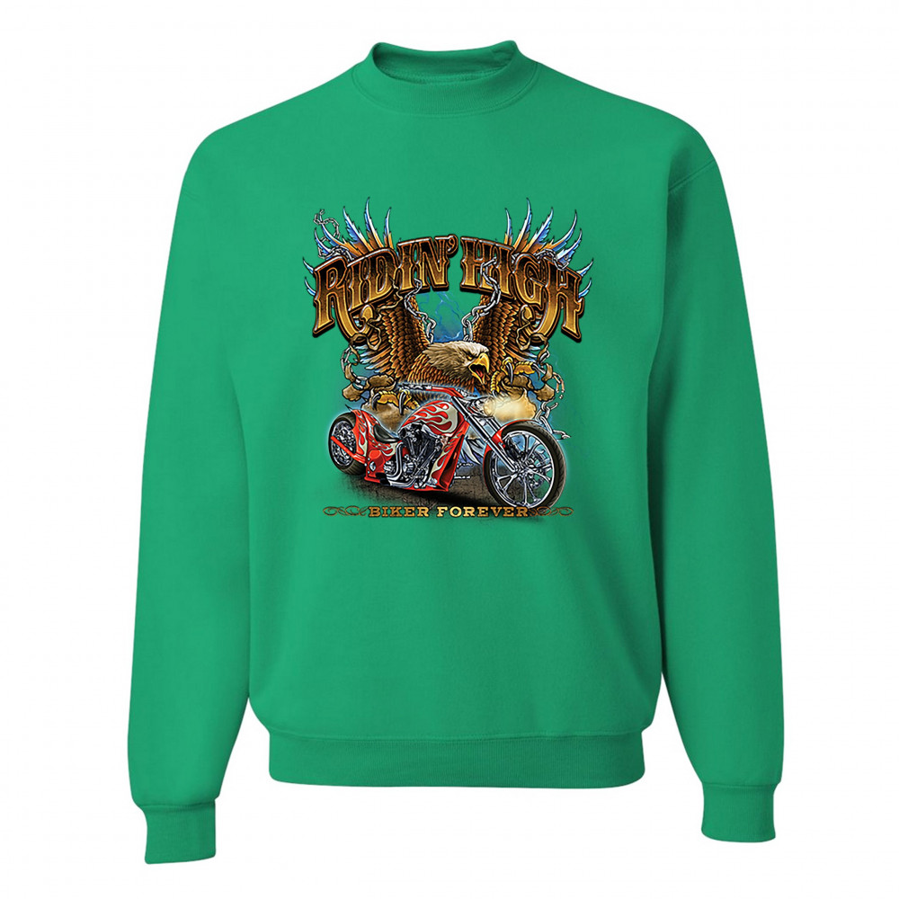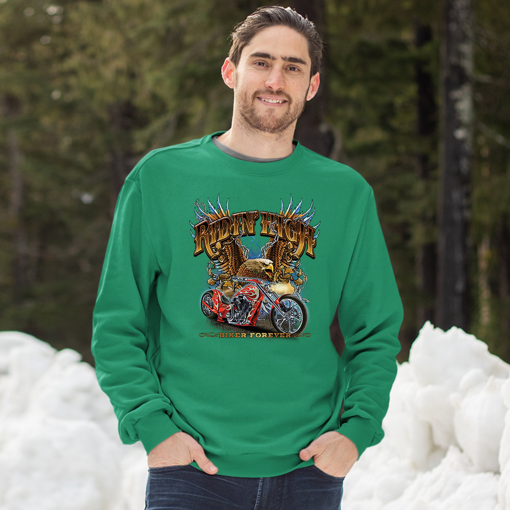 RIDIN' HIGH sweatshirt biker forever chopper rider american eagle crewneck green