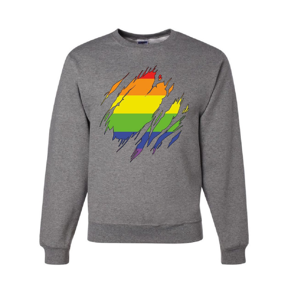 RIPPED GAY PRIDE RAINBOW FLAG sweatshirt lgbtq love wins gray