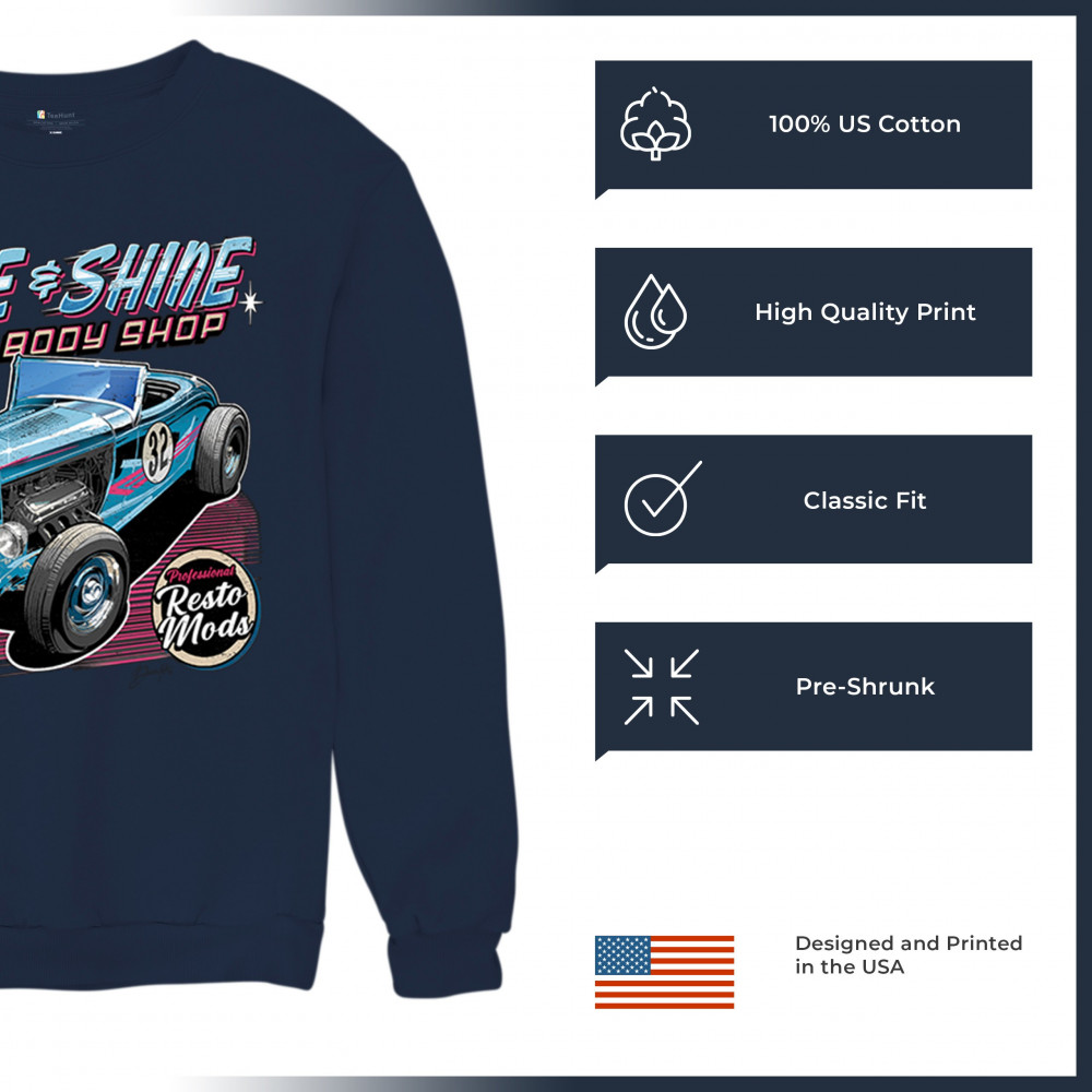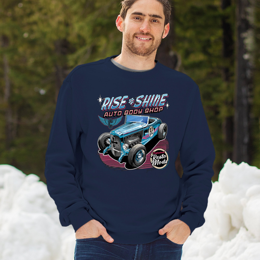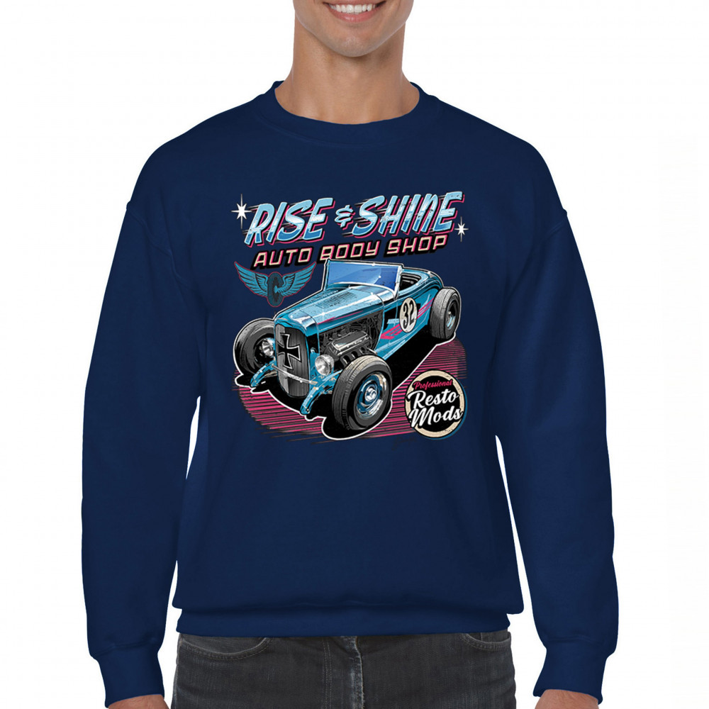 Our "Rise & Shine Auto Body Shop" design is a tribute to classic car culture and professional resto mods. This striking graphic showcases a vintage hot rod, perfect for car enthusiasts and auto restoration fans. Whether you're hitting the car show circuit or working in your garage, this design adds a touch of retro charm to your look. Crafted from premium materials, it offers both comfort and durability, ensuring it stands up to your active lifestyle. Celebrate the art of automotive restoration with this standout design.