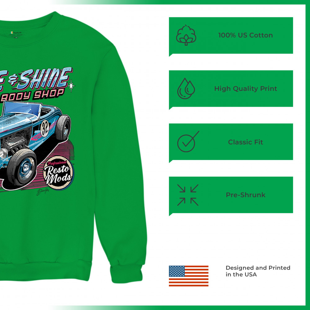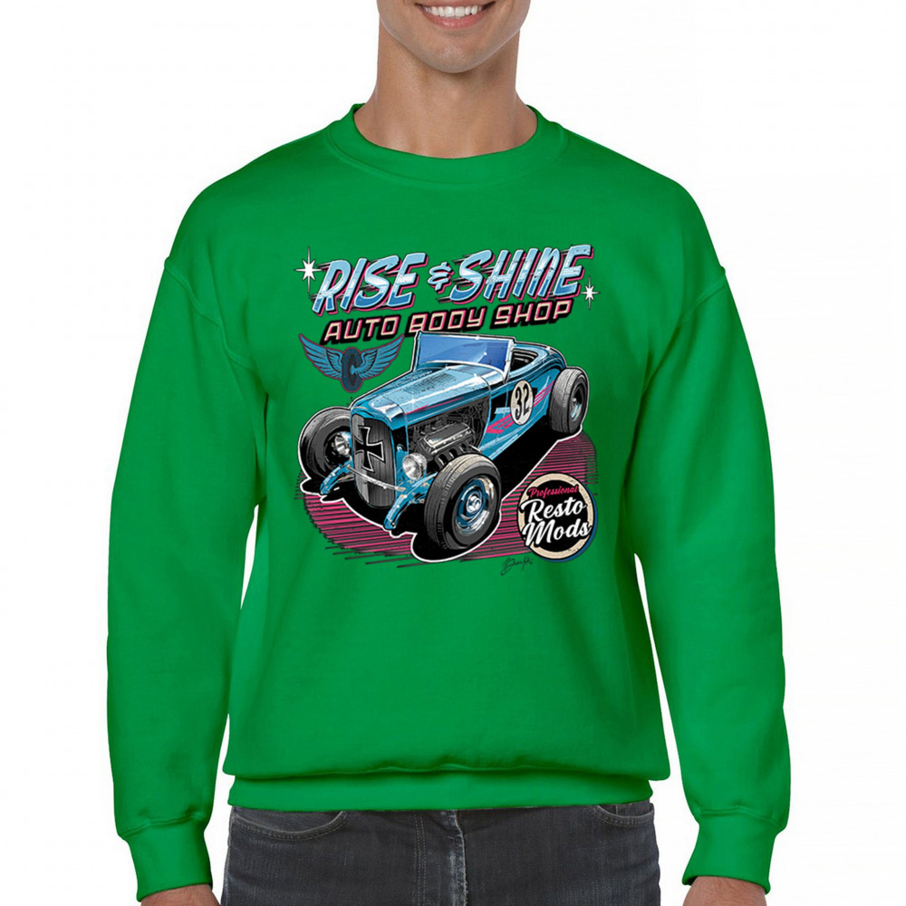 Our "Rise & Shine Auto Body Shop" design is a tribute to classic car culture and professional resto mods. This striking graphic showcases a vintage hot rod, perfect for car enthusiasts and auto restoration fans. Whether you're hitting the car show circuit or working in your garage, this design adds a touch of retro charm to your look. Crafted from premium materials, it offers both comfort and durability, ensuring it stands up to your active lifestyle. Celebrate the art of automotive restoration with this standout design.