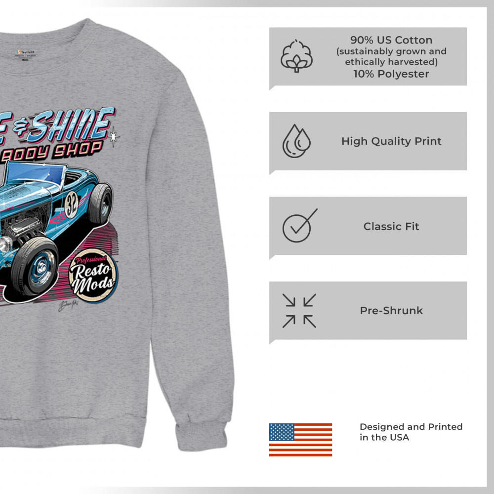 Our "Rise & Shine Auto Body Shop" design is a tribute to classic car culture and professional resto mods. This striking graphic showcases a vintage hot rod, perfect for car enthusiasts and auto restoration fans. Whether you're hitting the car show circuit or working in your garage, this design adds a touch of retro charm to your look. Crafted from premium materials, it offers both comfort and durability, ensuring it stands up to your active lifestyle. Celebrate the art of automotive restoration with this standout design.
