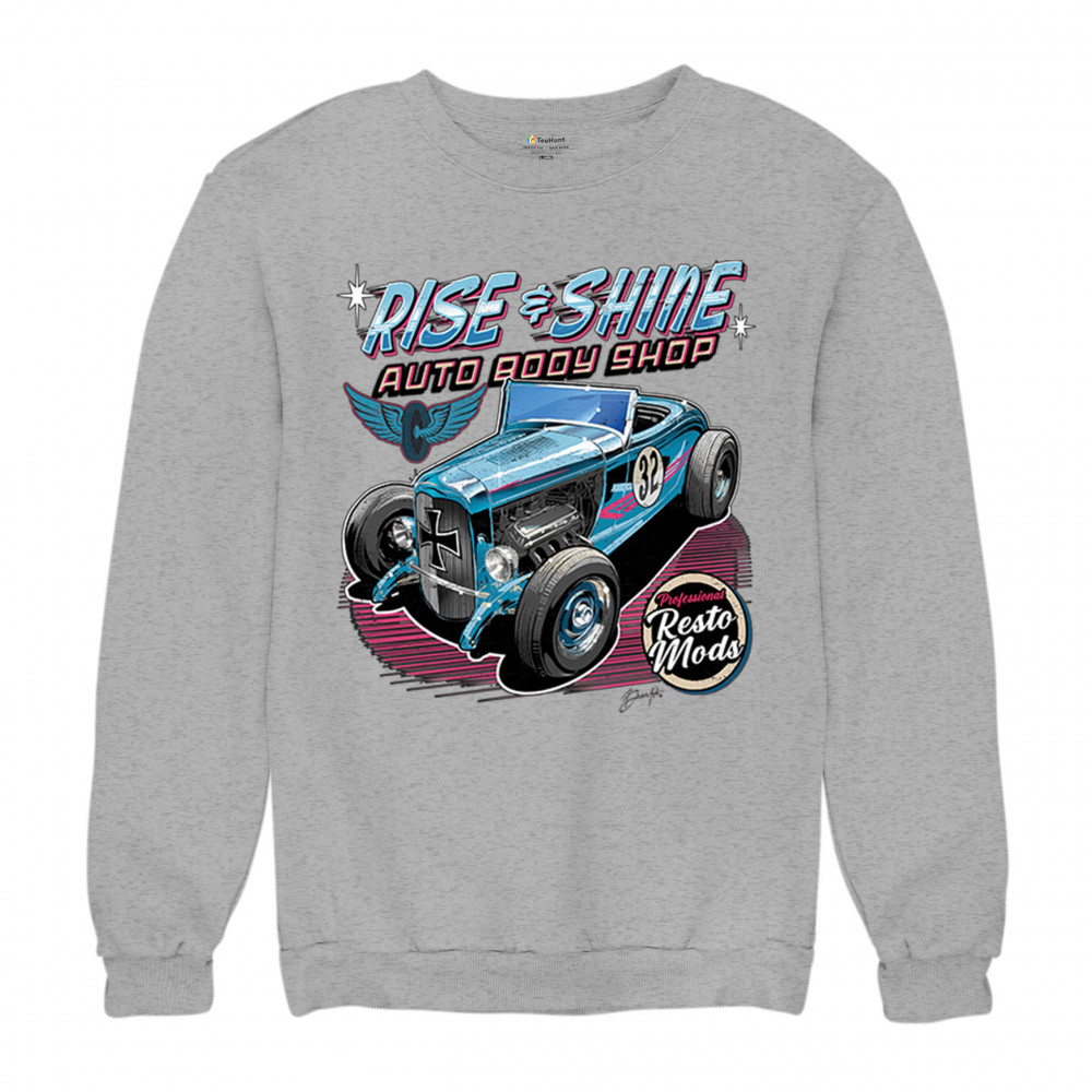 Celebrate vintage car culture with our "Rise & Shine Auto Body Shop" design. Perfect for car enthusiasts and auto restoration fans. Comfortable and durable.