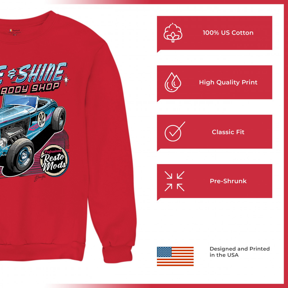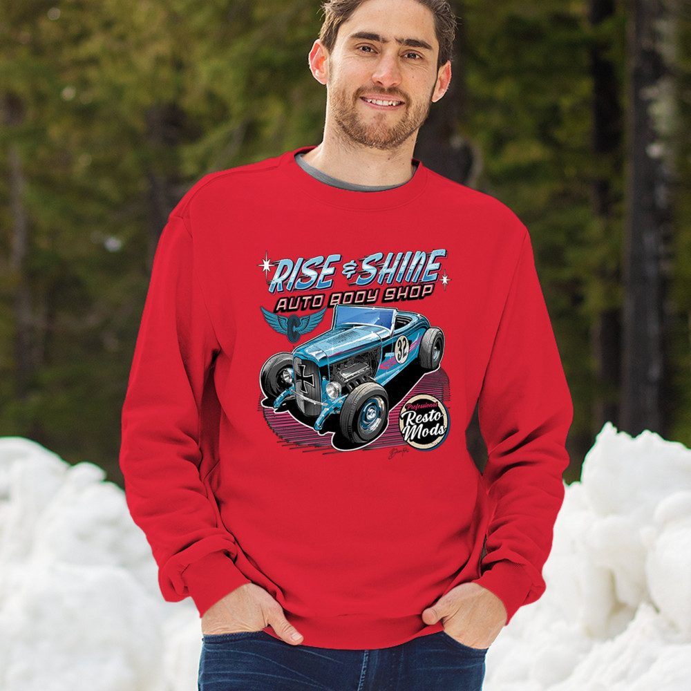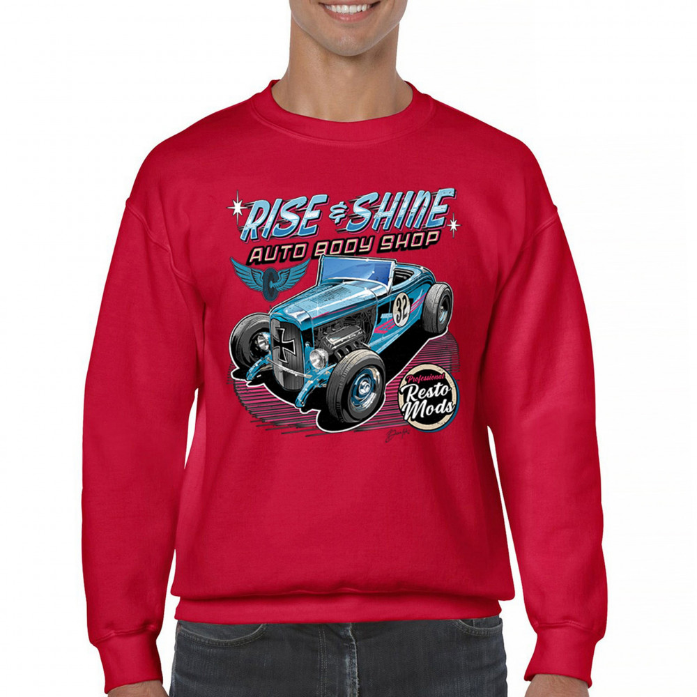 Our "Rise & Shine Auto Body Shop" design is a tribute to classic car culture and professional resto mods. This striking graphic showcases a vintage hot rod, perfect for car enthusiasts and auto restoration fans. Whether you're hitting the car show circuit or working in your garage, this design adds a touch of retro charm to your look. Crafted from premium materials, it offers both comfort and durability, ensuring it stands up to your active lifestyle. Celebrate the art of automotive restoration with this standout design.